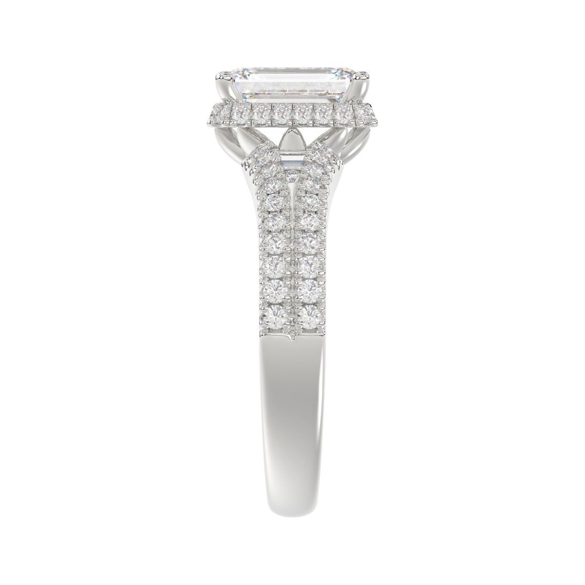 18K WHITE GOLD 1/2CT ROUND/BAGUETTE/EMERALD DIAMOND LADIES RING(CENTER STONE MOUNT EMERALD DIAMOND 1 1/2CT)