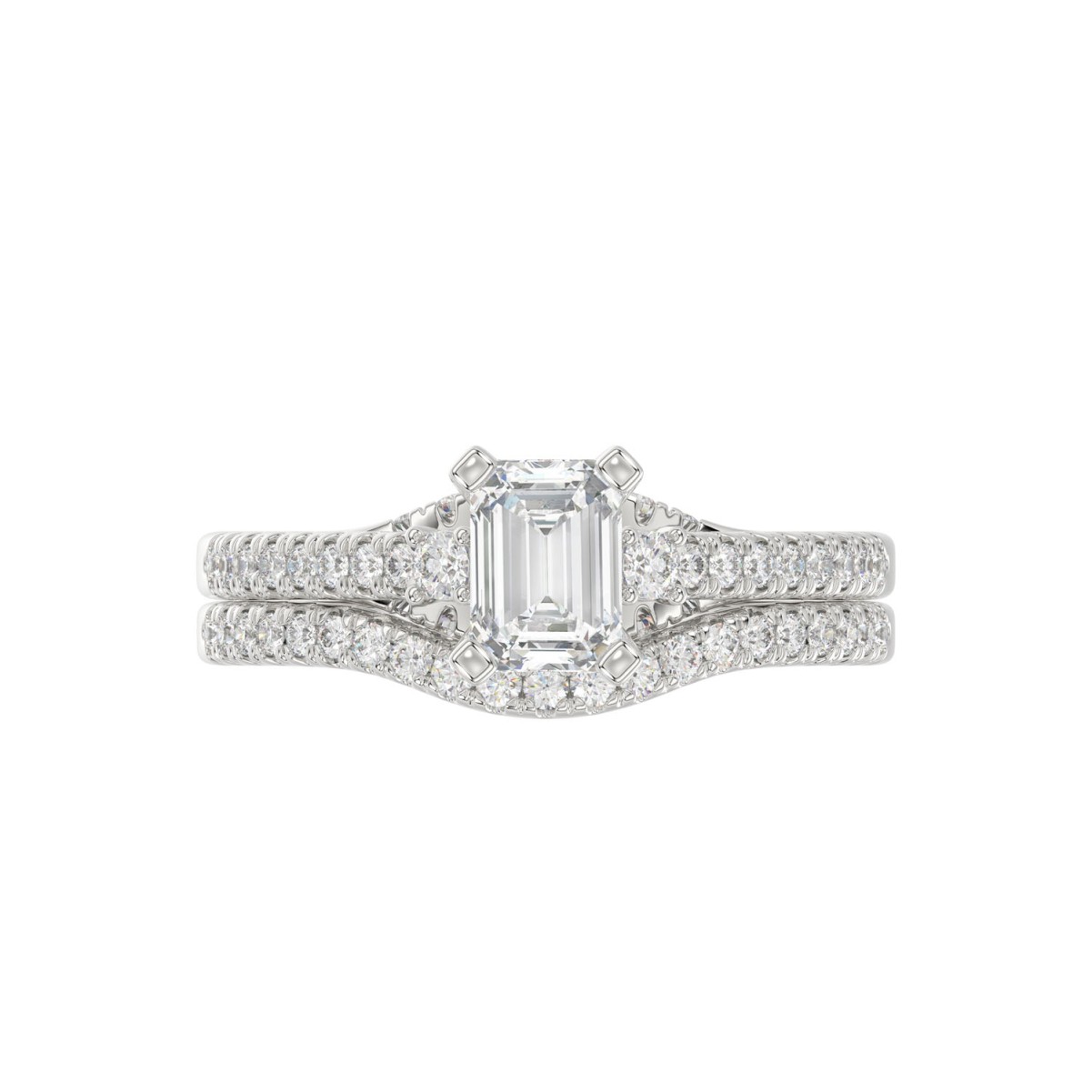 18K WHITE GOLD 1/2CT ROUND DIAMOND LADIES SEMI MOUNT BRIDAL SET(CENTER STONE MOUNT EMERALD DIAMOND 1CT)