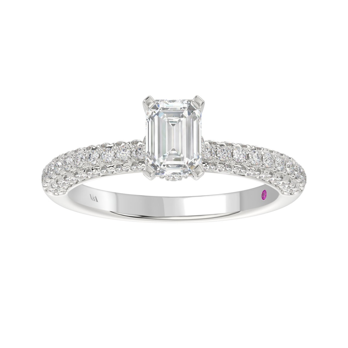 18K WHITE GOLD 1/2CT ROUND DIAMOND LADIES SEMI MOUNT RING(CENTER STONE MOUNT EMERALD DIAMOND 1CT)