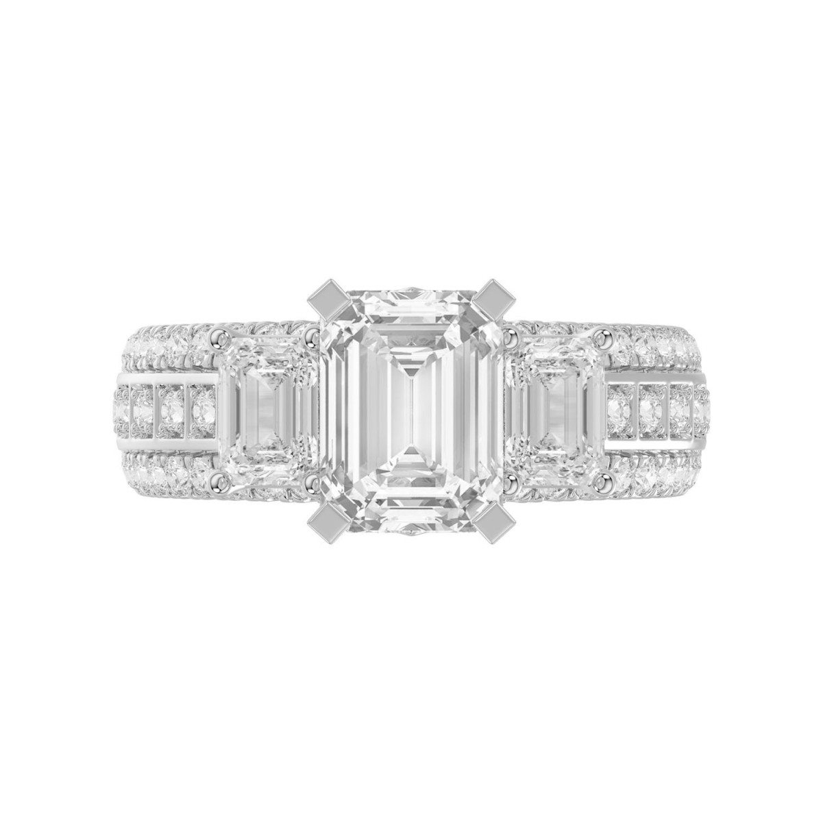 18K WHITE GOLD 1/2CT ROUND/EMERALD DIAMOND LADIES RING(CENTER STONE MOUNT EMERALD DIAMOND 2CT)