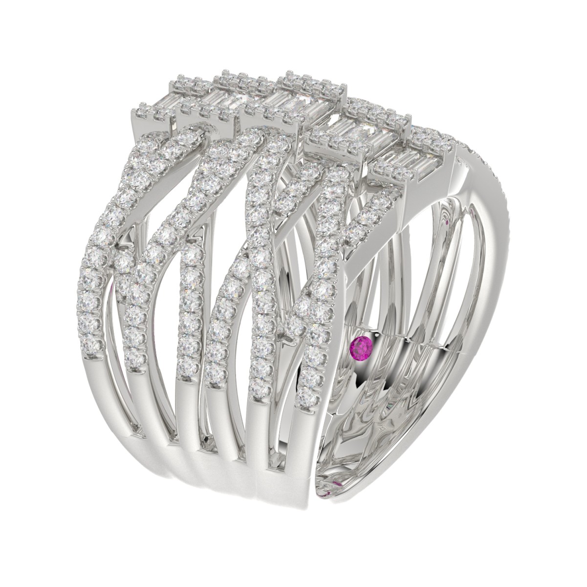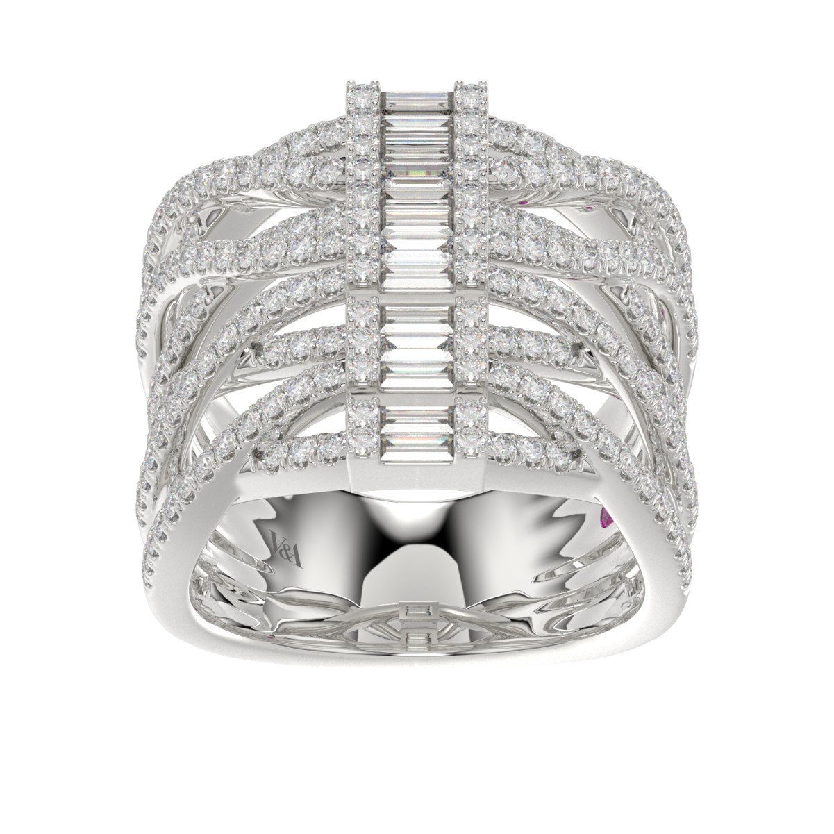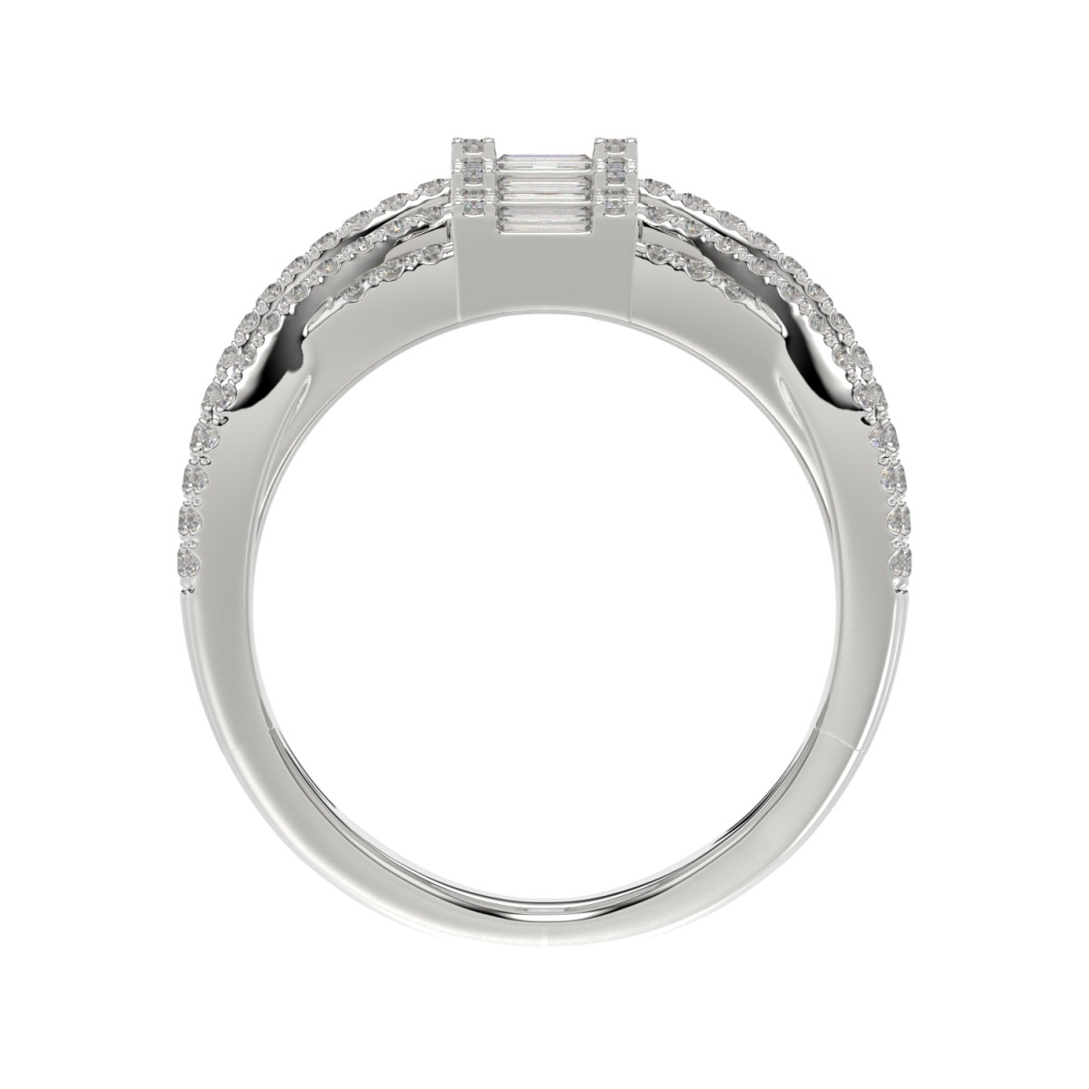 18K WHITE GOLD 1 3/4CT ROUND/BAGUETTE DIAMOND LADIES FASHION RING