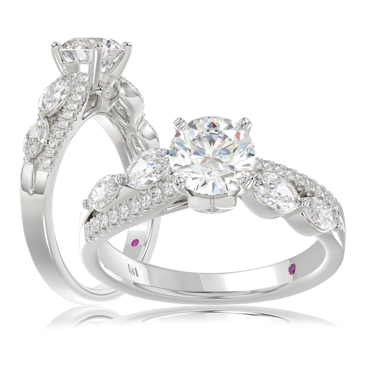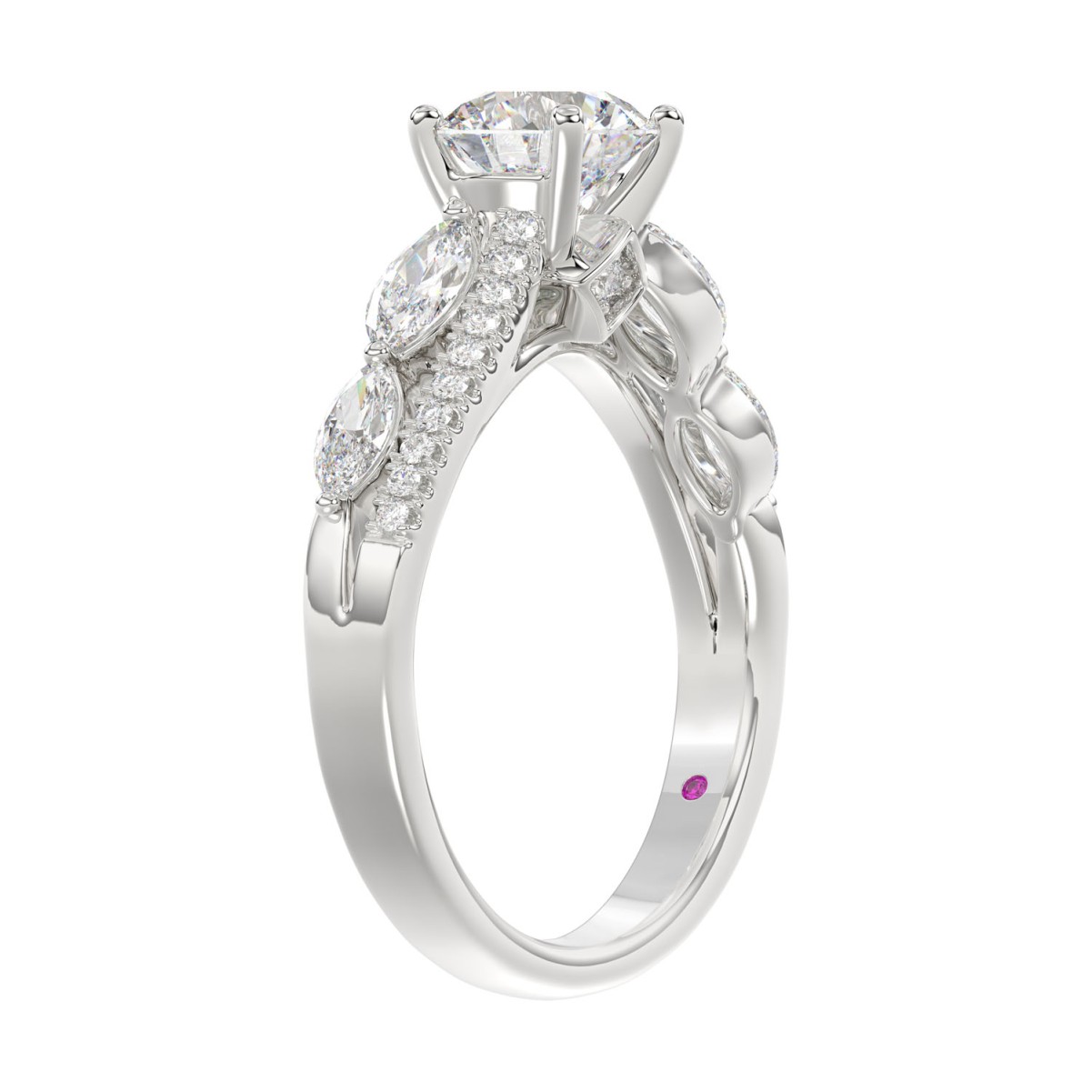 18K WHITE GOLD 1 3/4CT ROUND/MARQUISE DIAMOND LADIES SEMI MOUNT RING(CENTER STONE MOUNT ROUND DIAMOND 1CT)