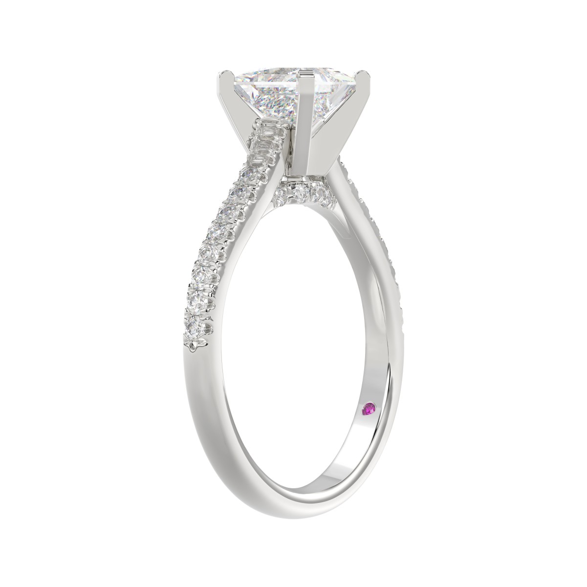 18K WHITE GOLD 1/4CT ROUND DIAMOND LADIES SEMI MOUNT RING(CENTER STONE MOUNT PRINCESS DIAMOND 1CT)