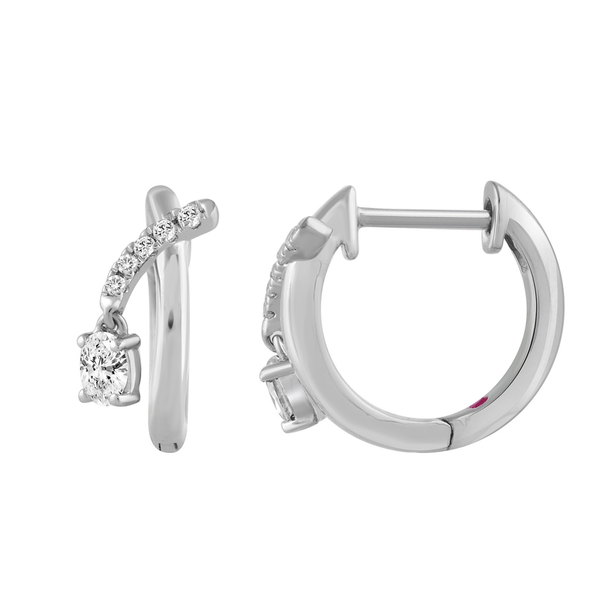 18K WHITE GOLD 1/4CT ROUND/OVAL DIAMOND LADIES HOOP EARRINGS