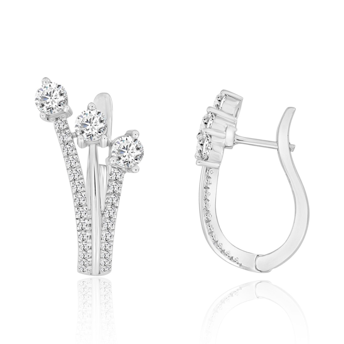 18K WHITE GOLD 1 5/8CT ROUND DIAMOND LADIES HOOPS EARRINGS