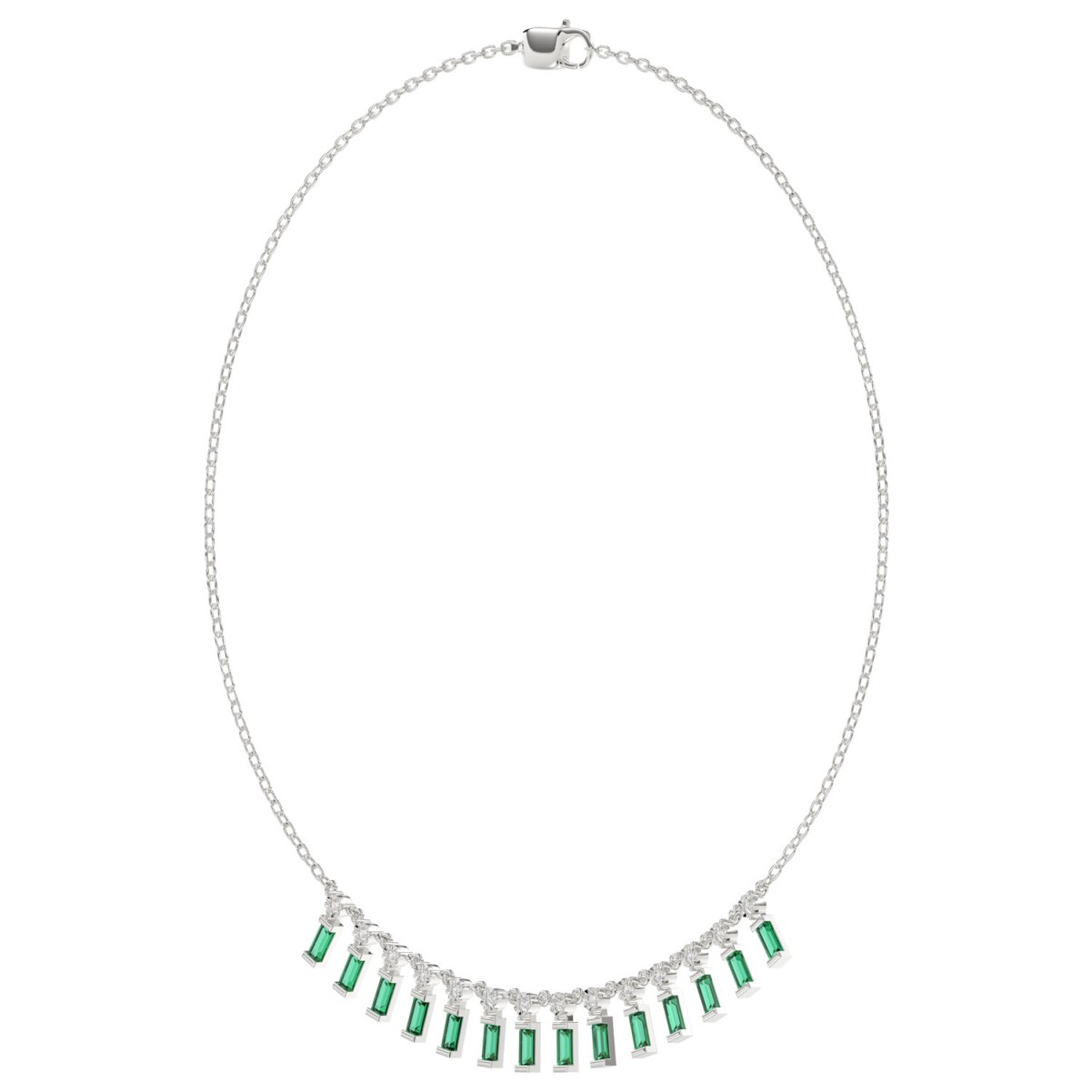 18K WHITE GOLD 1CT ROUND/BAGUETTE DIAMOND LADIES NECKLACE(COLOR STONE EMERALD DIAMOND 3/4CT)