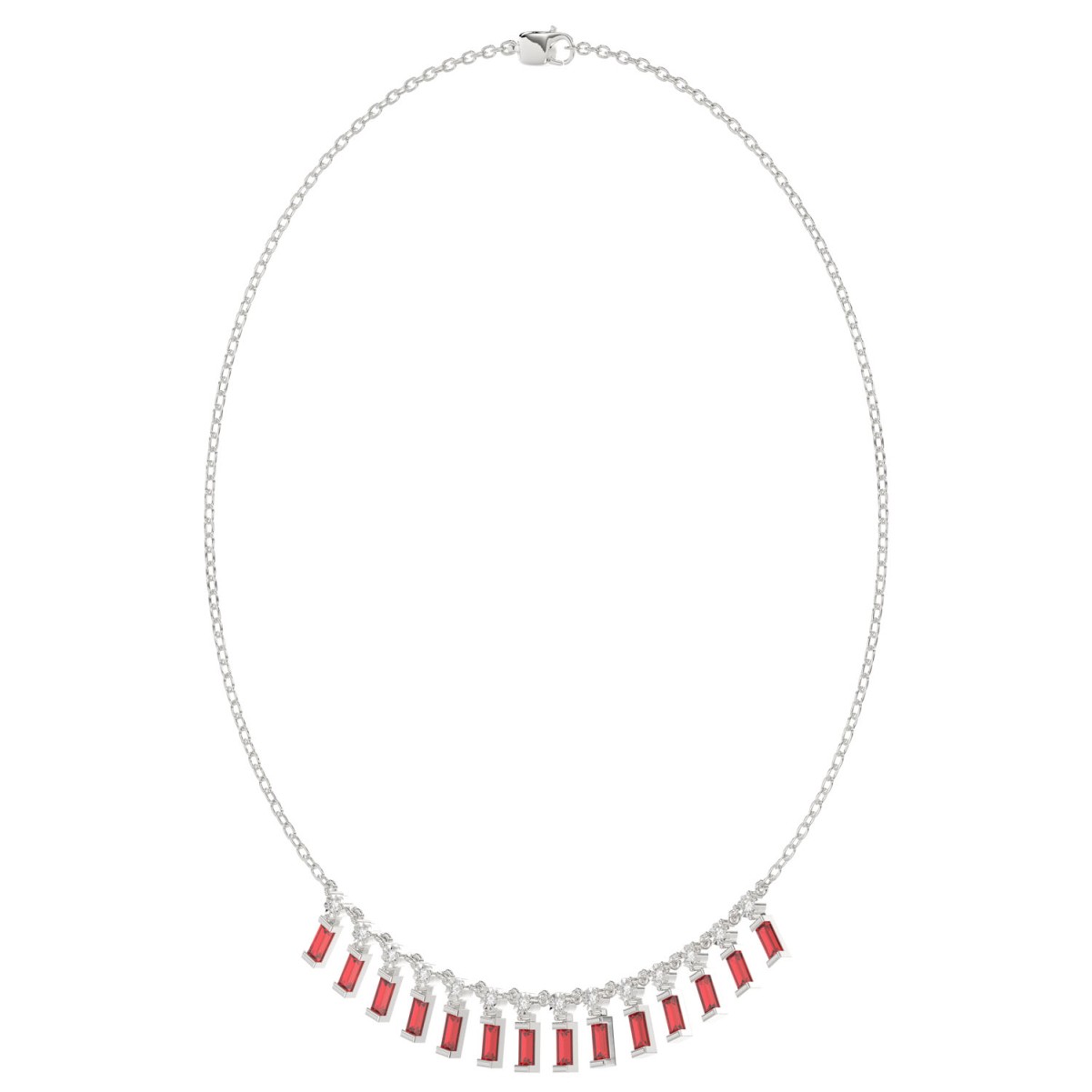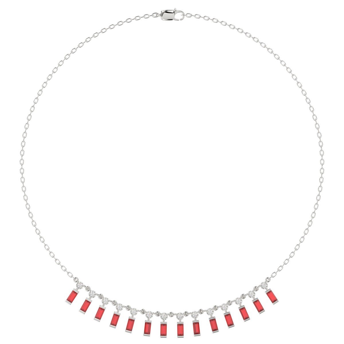 18K WHITE GOLD 1CT ROUND/BAGUETTE DIAMOND LADIES NECKLACE(COLOR STONE RUBY DIAMOND 3/4CT)