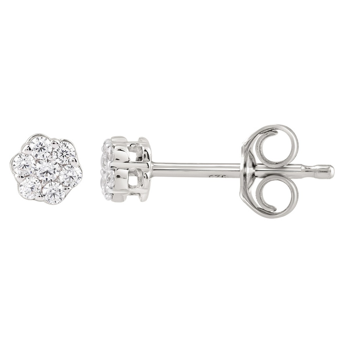 18K WHITE GOLD 1CT ROUND DIAMOND LADIES FLOWER EARRINGS