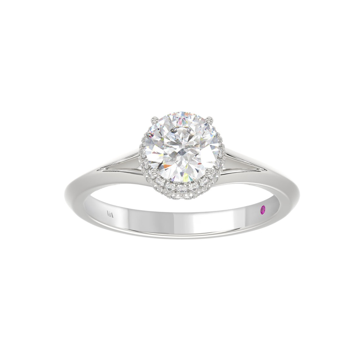 18K WHITE GOLD 1CT ROUND DIAMOND LADIES RING( CENTER STONE ROUND DIAMOND 7/8 CT)
