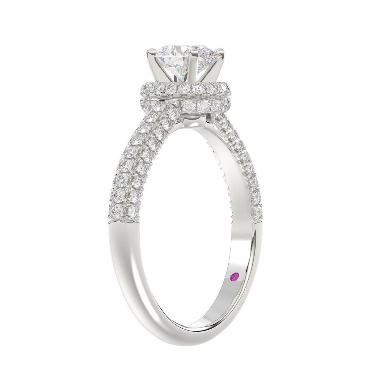 18K WHITE GOLD 1CT ROUND/OVAL DIAMOND LADIES RING(CENTER STONE OVAL DIAMOND 1/2 CT)