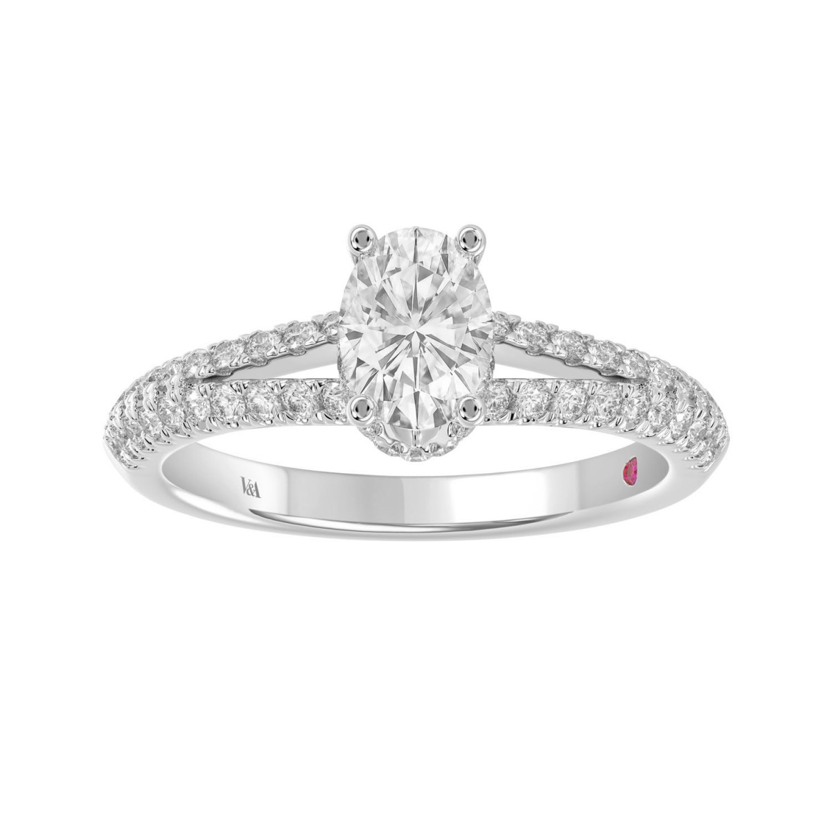 18K WHITE GOLD 1CT ROUND/OVAL DIAMOND LADIES SEMI MOUNT RING(CENTER STONE OVAL DIAMOND 3/4CT)