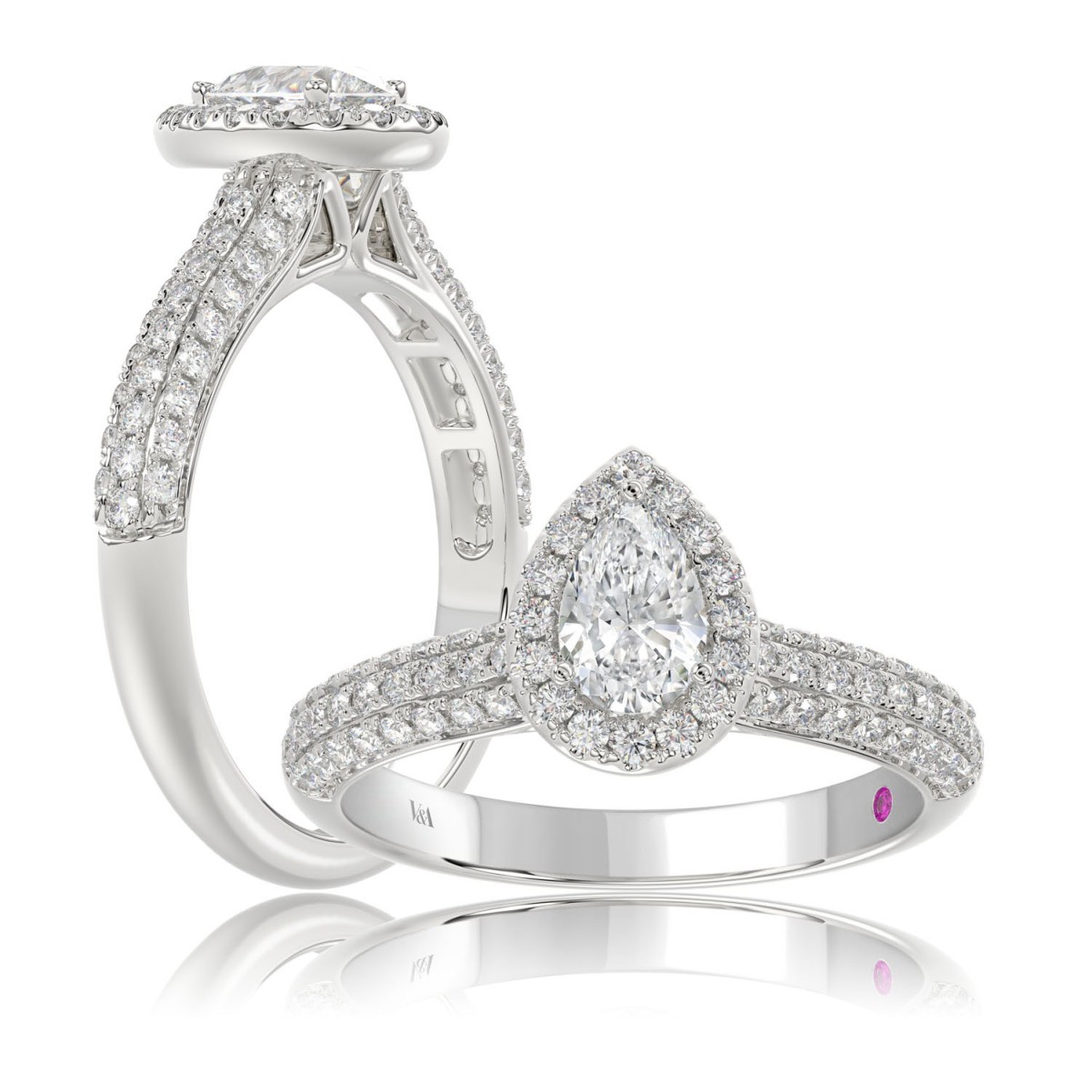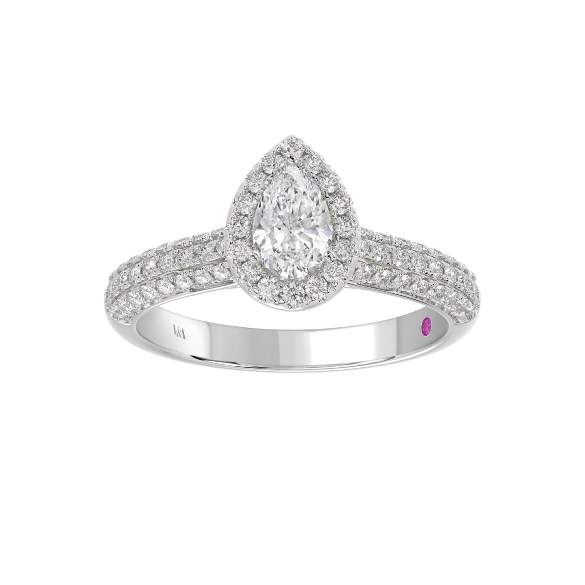 18K WHITE GOLD 1CT ROUND/PEAR DIAMOND LADIES RING(CENTER STONE PEAR DIAMOND 1/2CT)