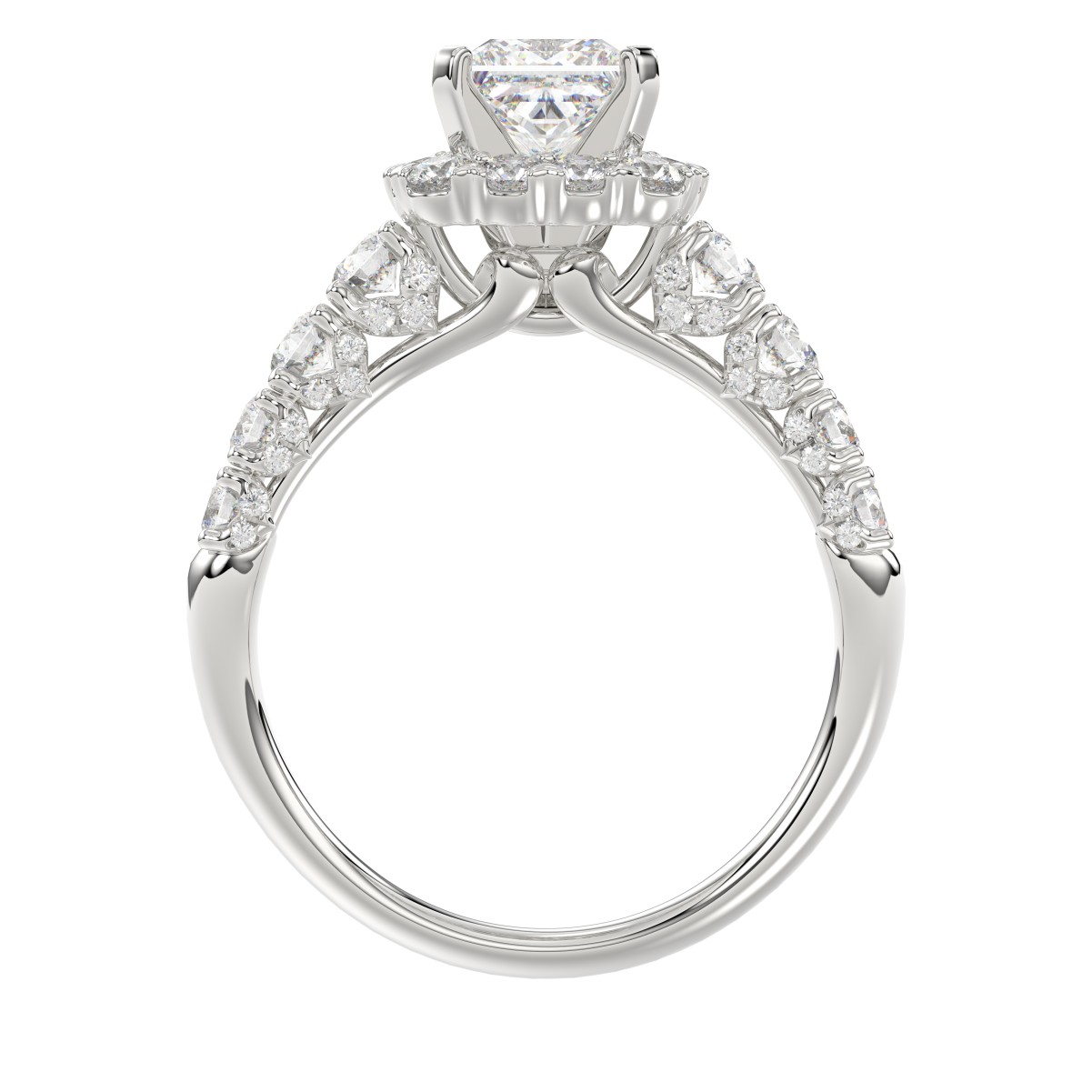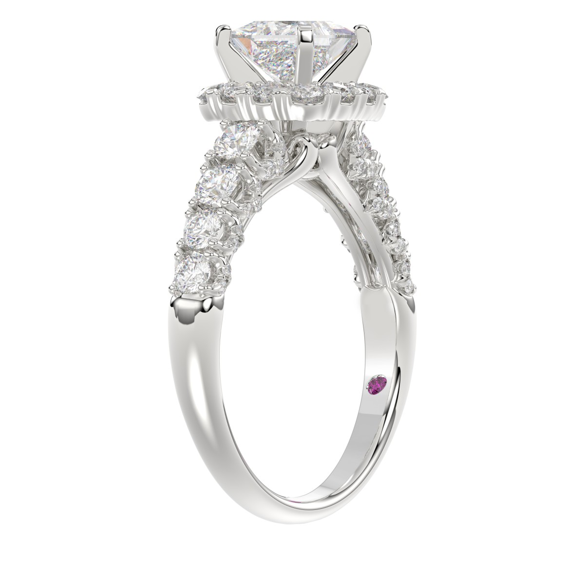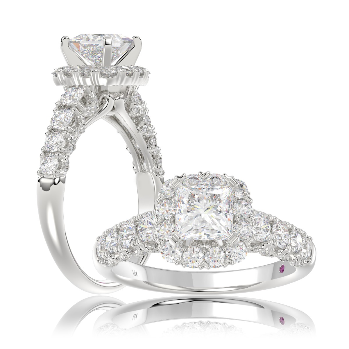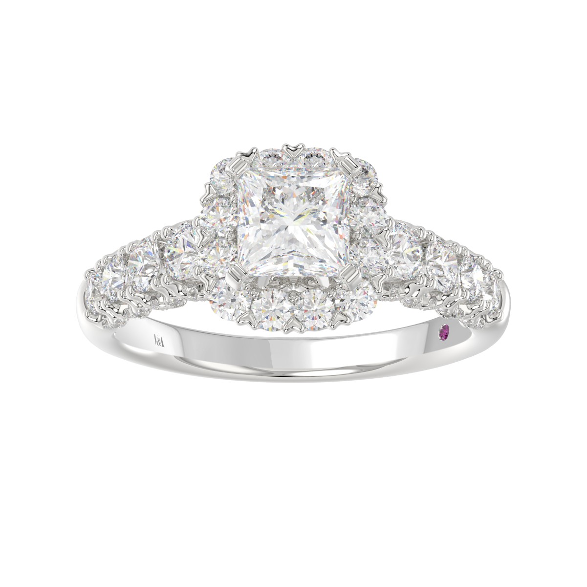 18K WHITE GOLD 2.00CT ROUND DIAMOND SEMI MOUNT LADIES RING (CENTER STONE PRINCESS DIAMOND 1.00CT)