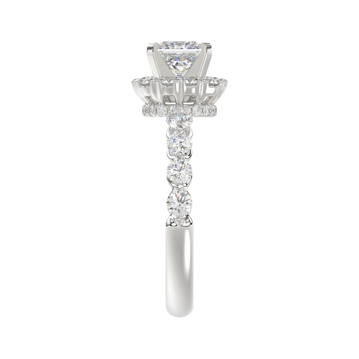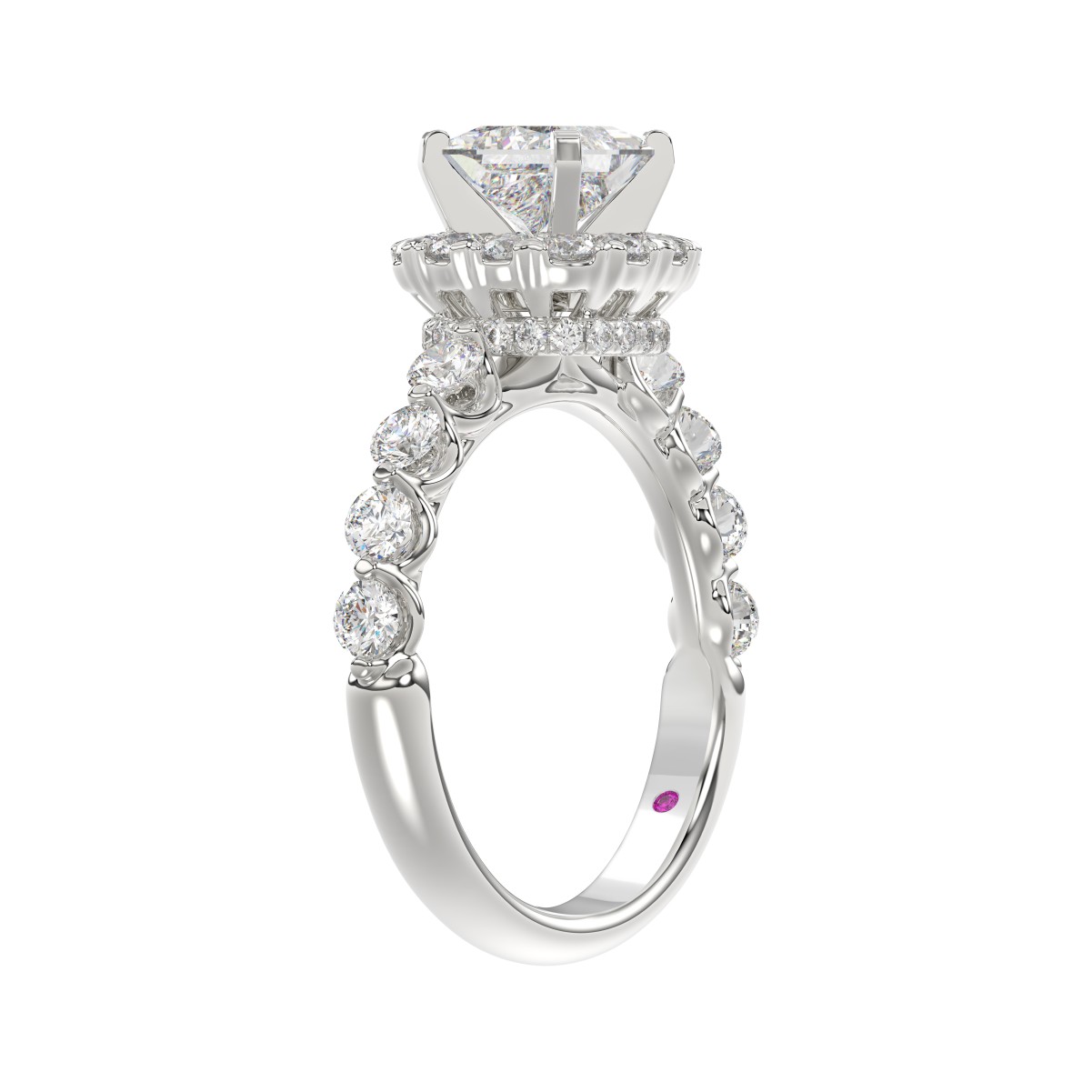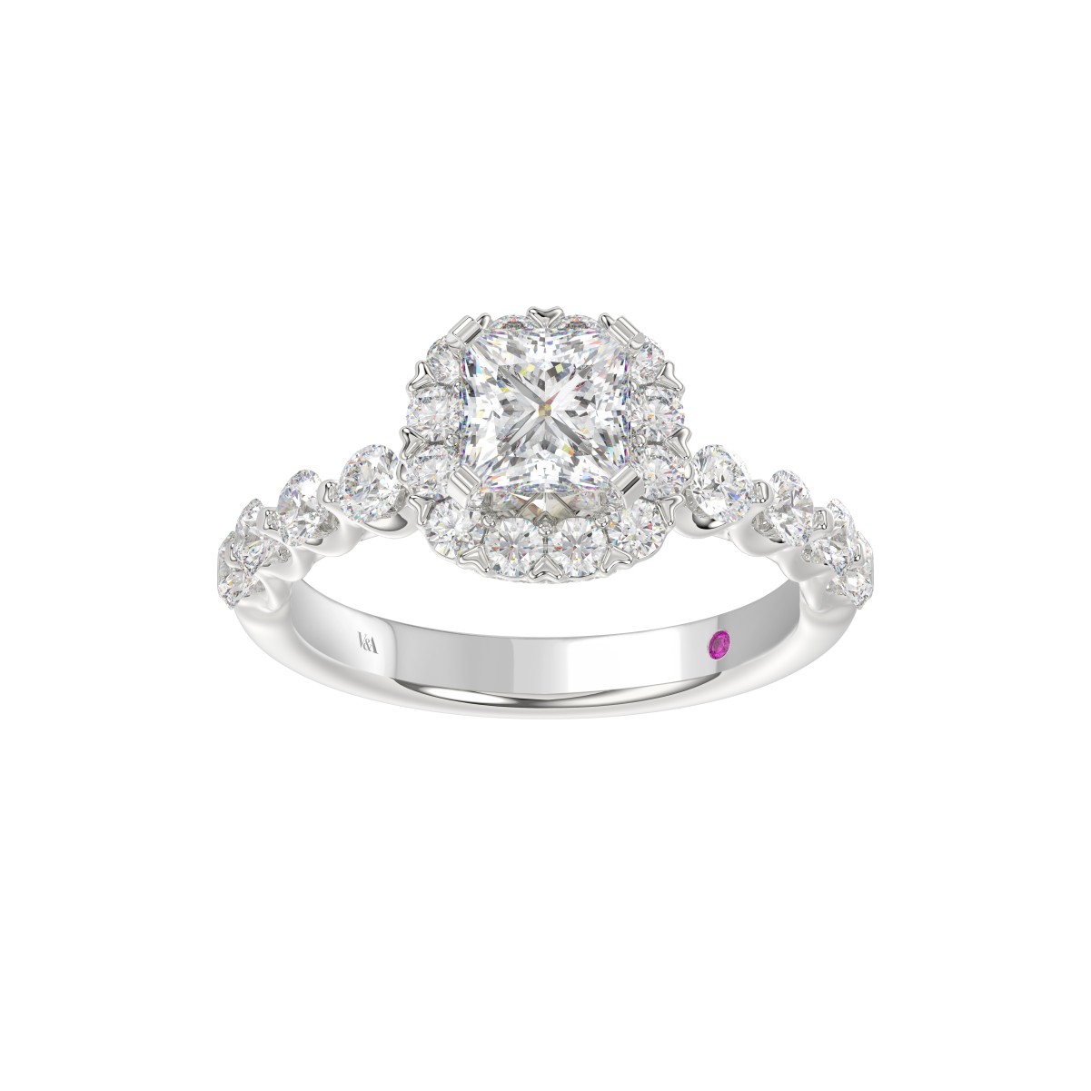 18K WHITE GOLD 2.00CT ROUND/PRINCESS DIAMOND SEMI MOUNT LADIES RING (CENTER STONE PRINCESS DIAMOND 1.00CT)