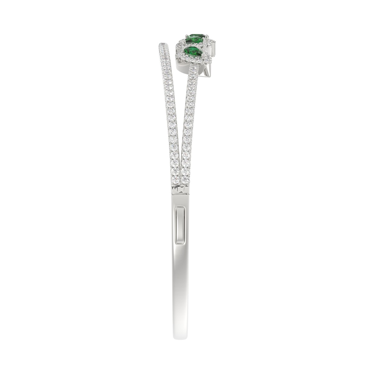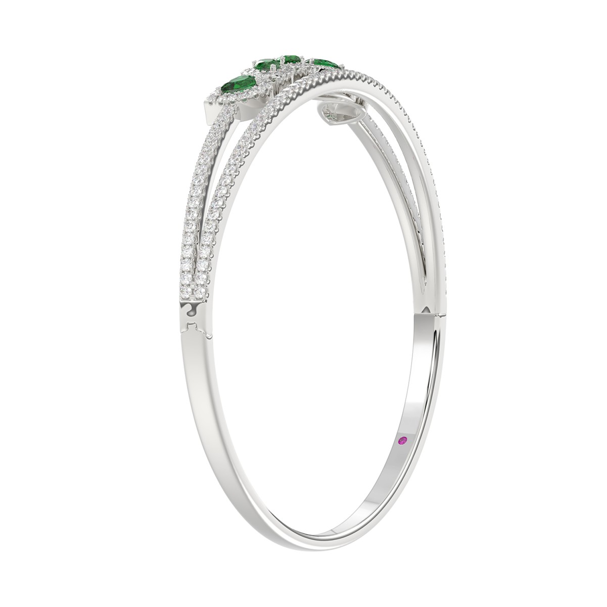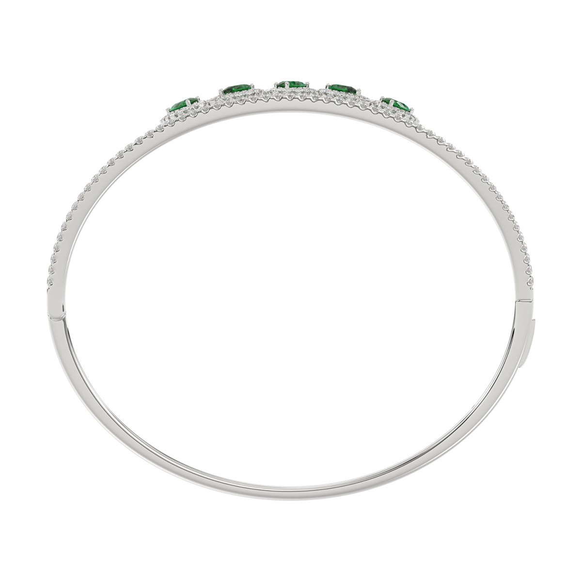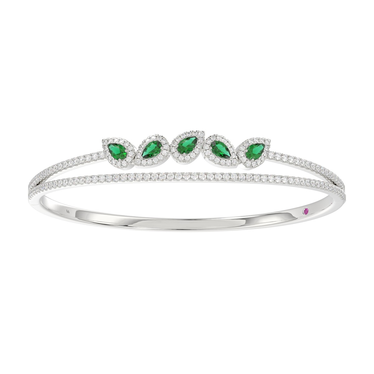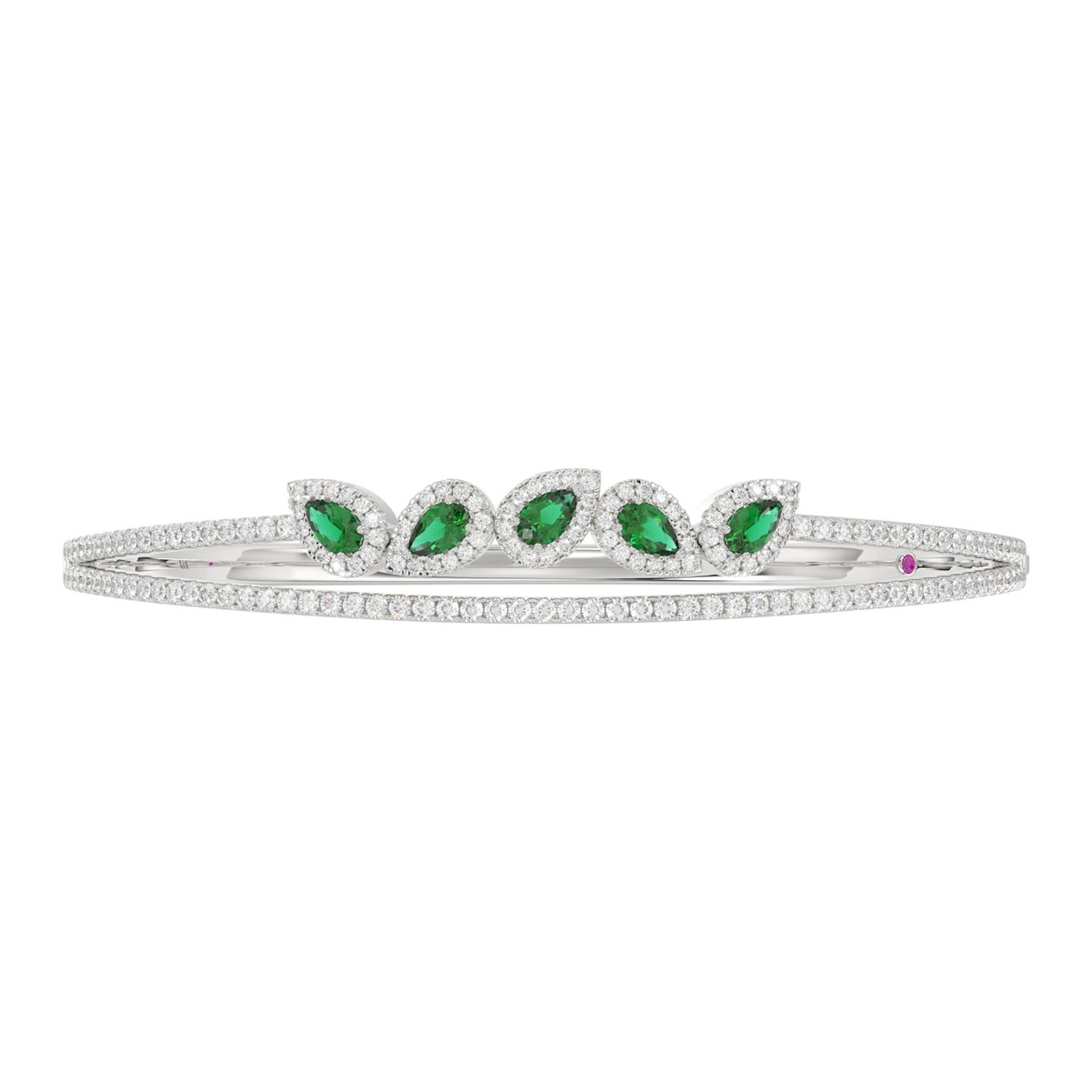 18K WHITE GOLD 2 1/3CT ROUND/PEAR DIAMOND LADIES BANGLE(COLOR STONE PEAR GREEN EMERALD DIAMOND 1CT)