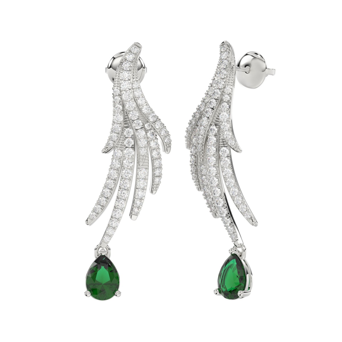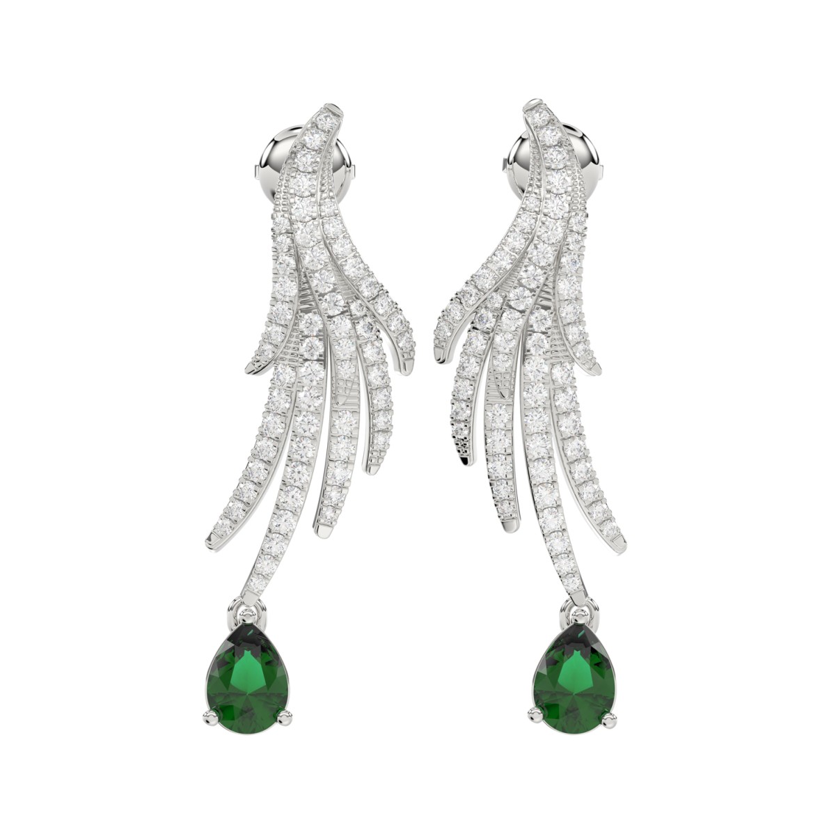 18K WHITE GOLD 2 3/8CT ROUND/PEAR DIAMOND LADIES EARRINGS(COLOR STONE EMERALD/PEAR DIAMOND 1 3/8CT)