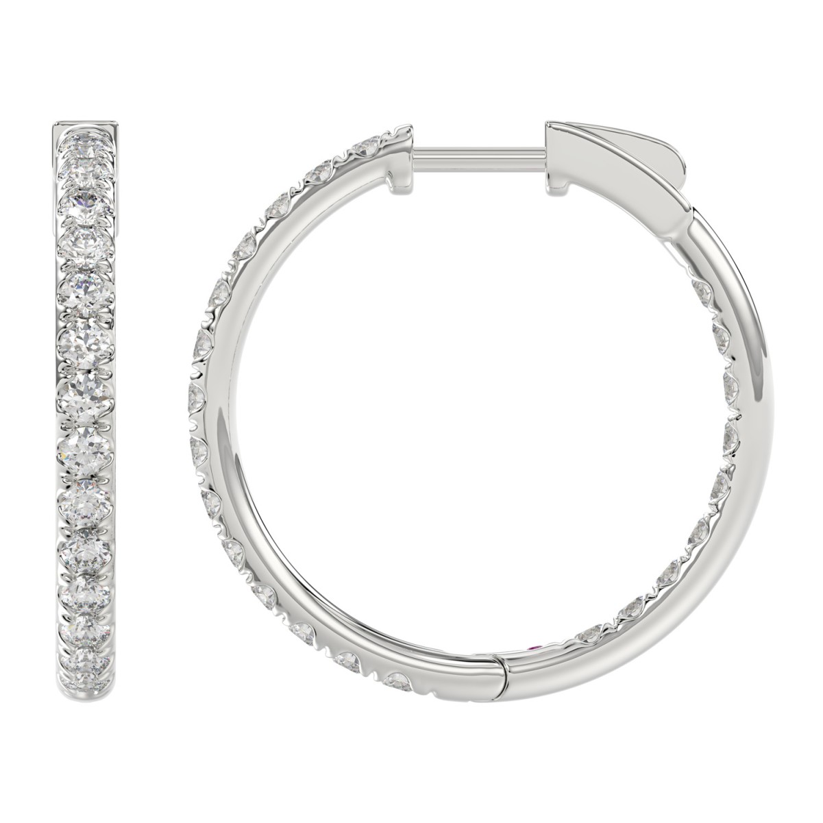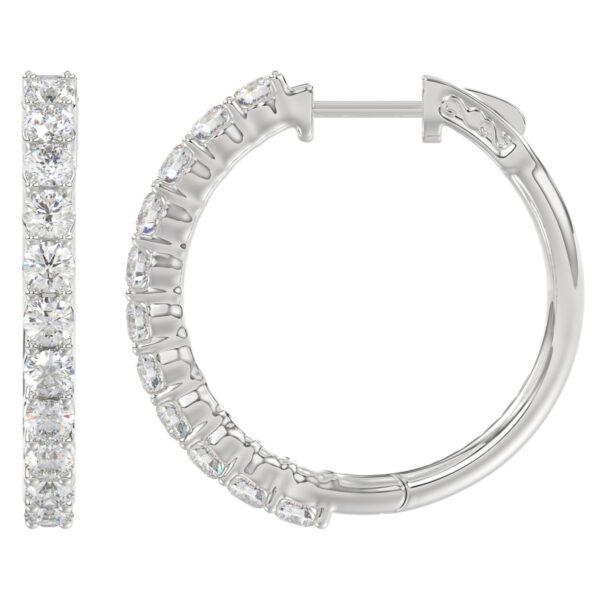 18K WHITE GOLD 2CT ROUND DIAMOND LADIES HOOPS EARRINGS