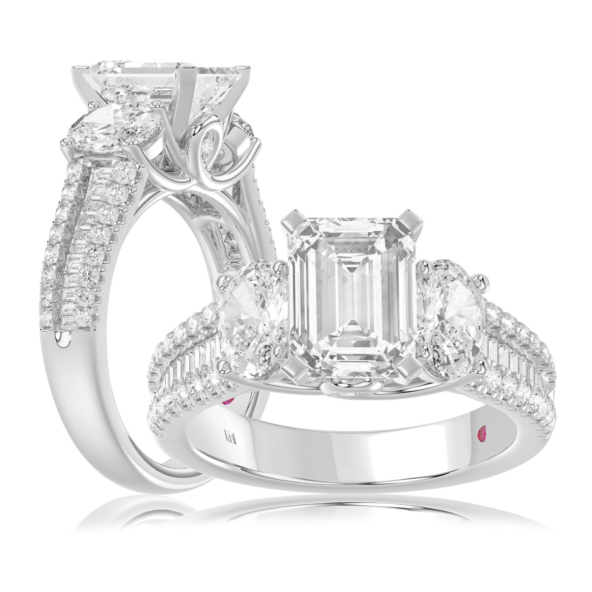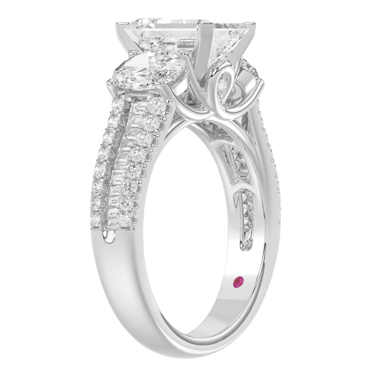 18K WHITE GOLD 3 1/2CT ROUND/EMRALD/BAGUETTE DIAMOND LADIES SEMI MOUNT RING(CENTER STONE MOUNT EMERALD DIAMOND 2CT)