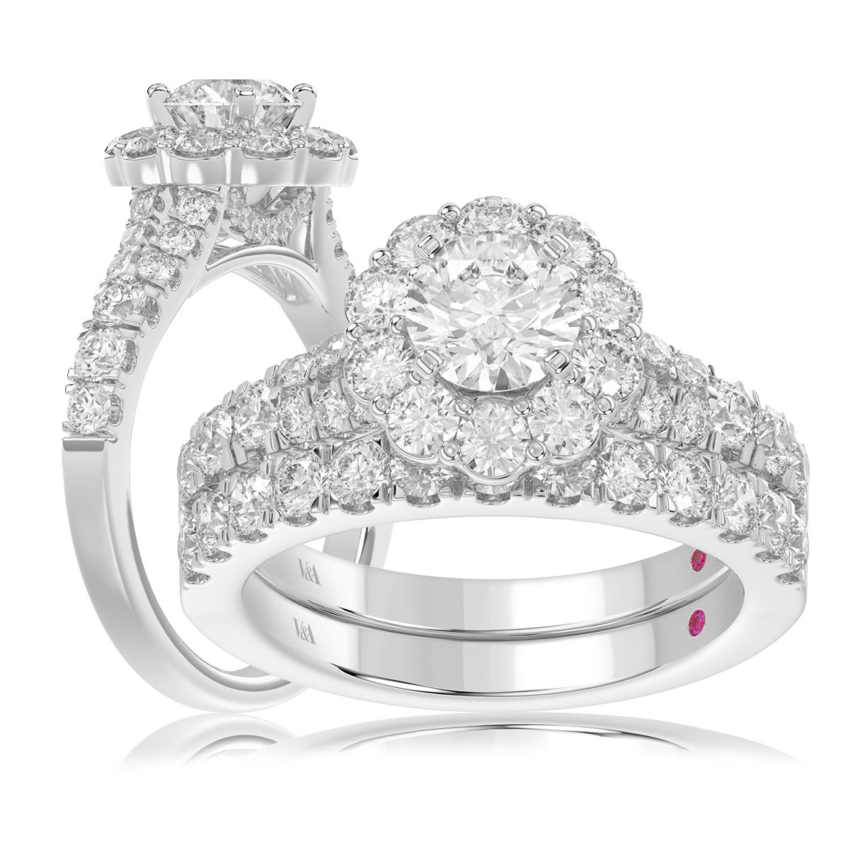 18K WHITE GOLD 3 3/4CT ROUND DIAMOND LADIES SEMI MOUNT BRIDAL SET(CENTER STONE MOUNT ROUND DIAMOND 1CT