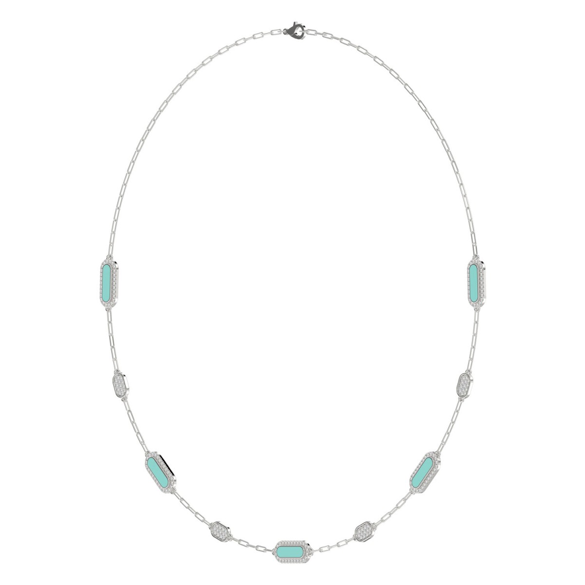 18K WHITE GOLD 3/4CT ROUND DIAMOND LADIES NECKLACE (CELESTE BLUE ENAMEL)