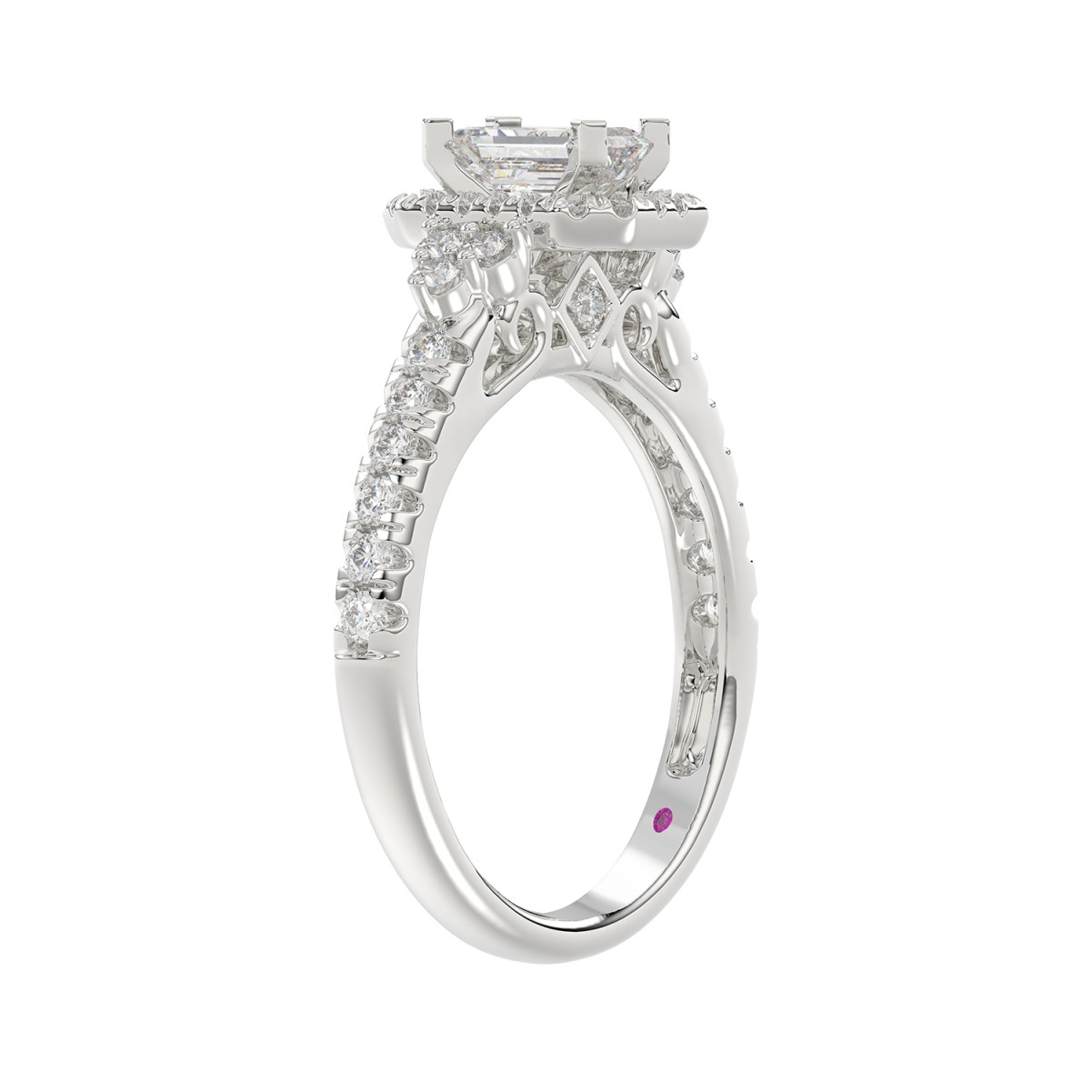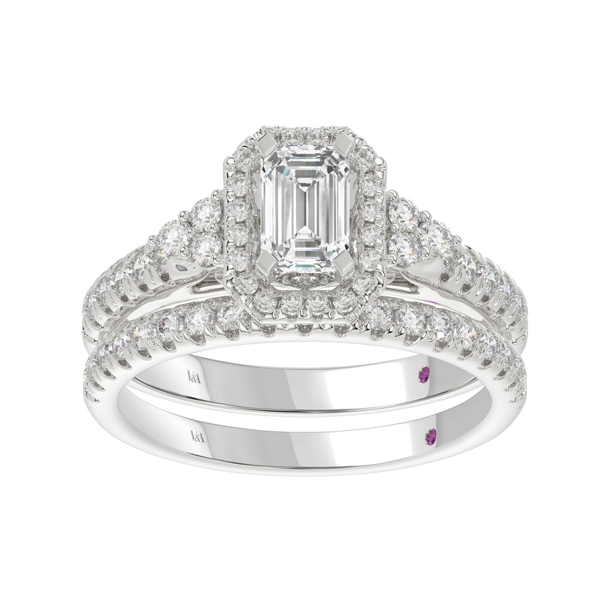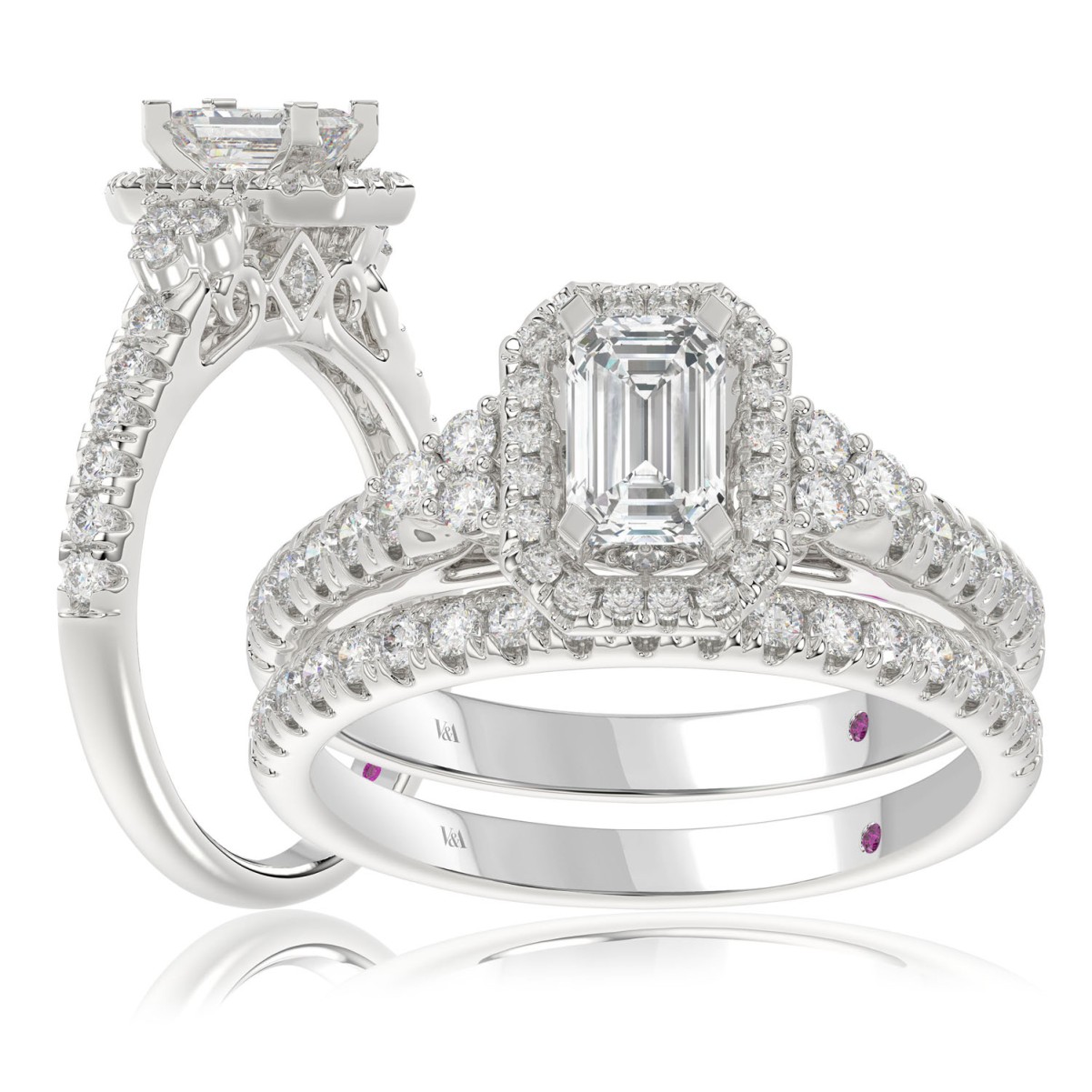 18K WHITE GOLD 3/4CT ROUND/EMERALD DIAMOND LADIES BRIDAL SET(CENTER STONE EMERALD DIAMOND 1/2CT)`