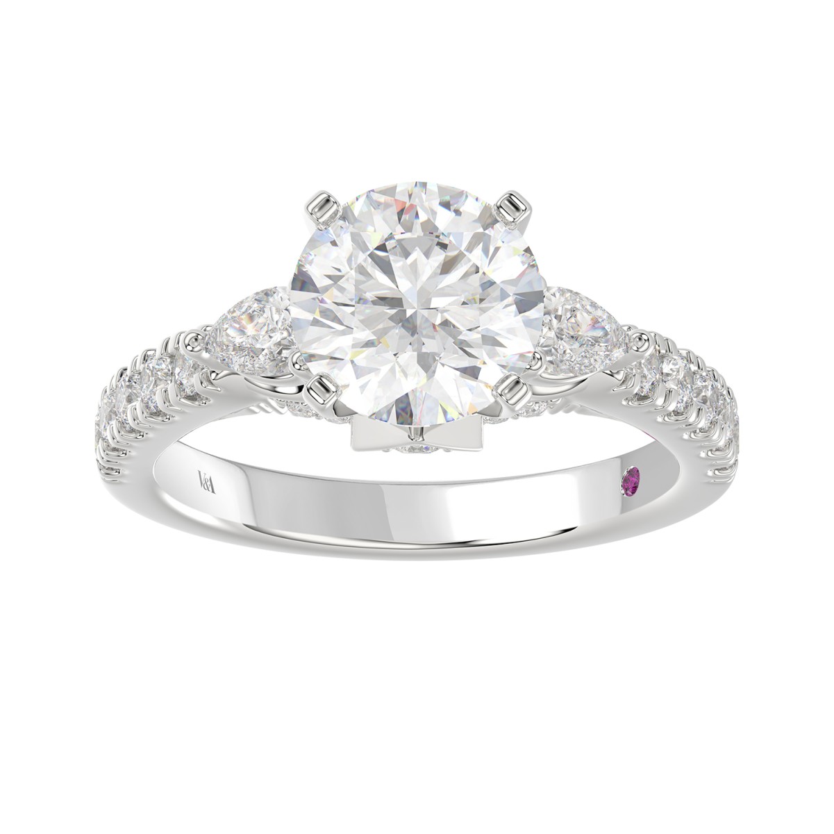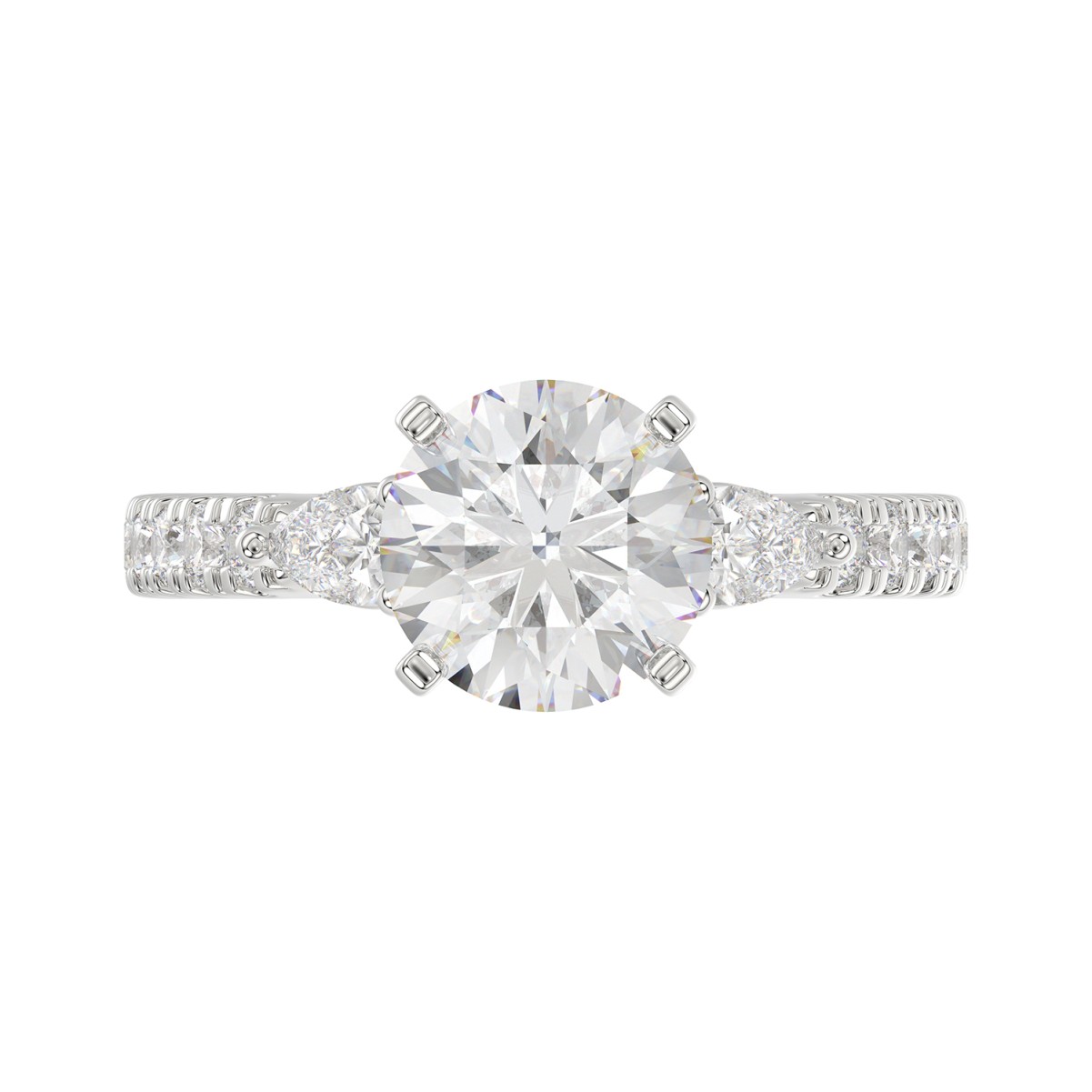 18K WHITE GOLD 3/4CT ROUND/PEAR DIAMOND SEMI MOUNT LADIES RING (CENTER STONE ROUND DIAMOND 2.00CT)