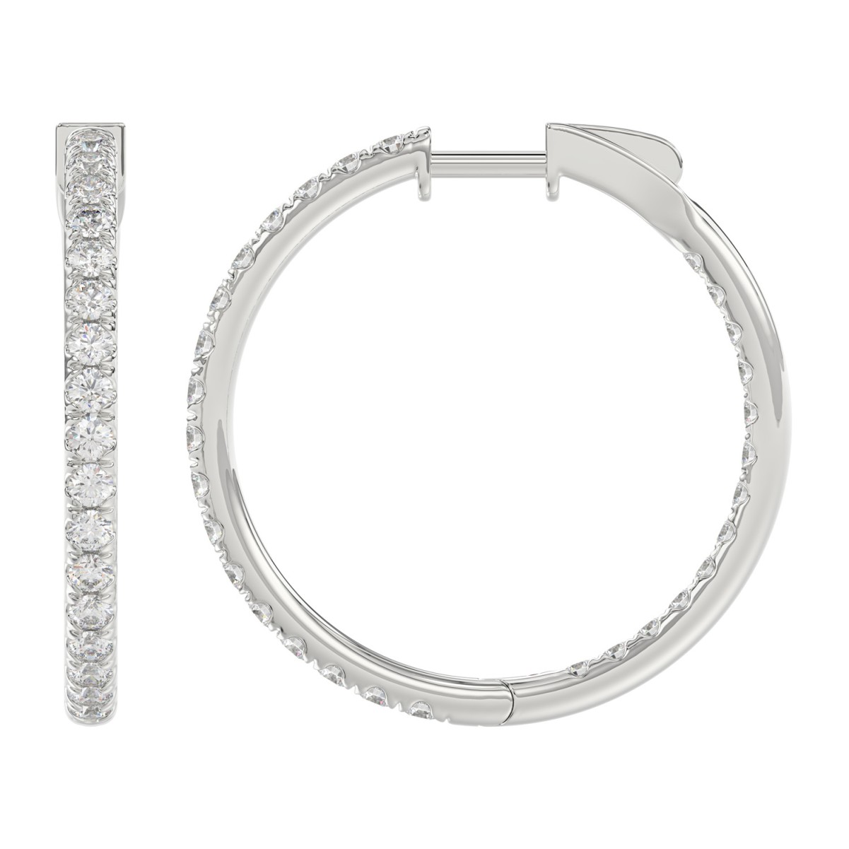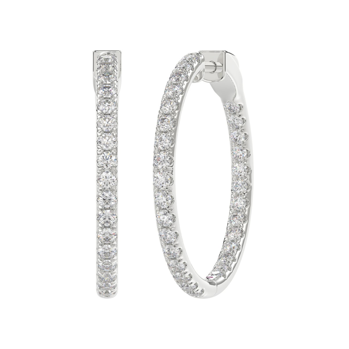 18K WHITE GOLD 3CT ROUND DIAMOND LADIES HOOPS EARRINGS