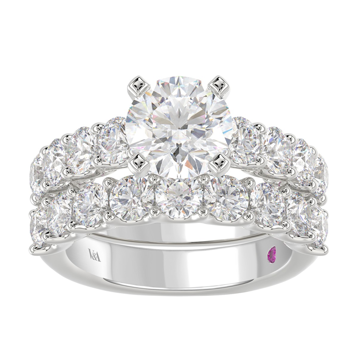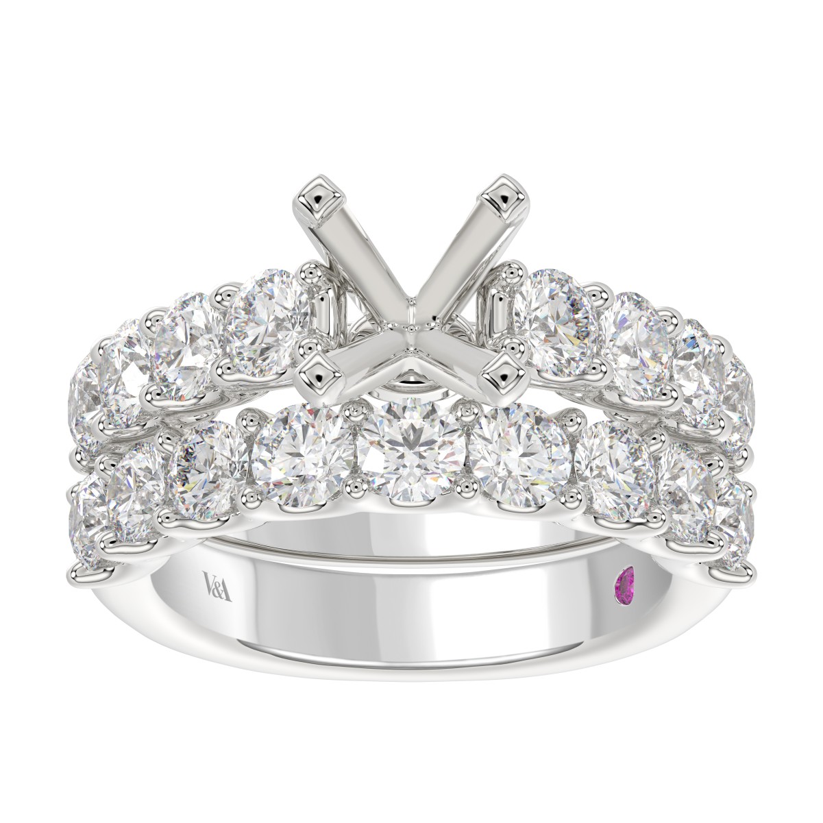 18K WHITE GOLD 3CT ROUND DIAMOND LADIES SEMI MOUNT BRIDAL SET(CENTER STONE MOUNT ROUND DIAMOND 2CT)