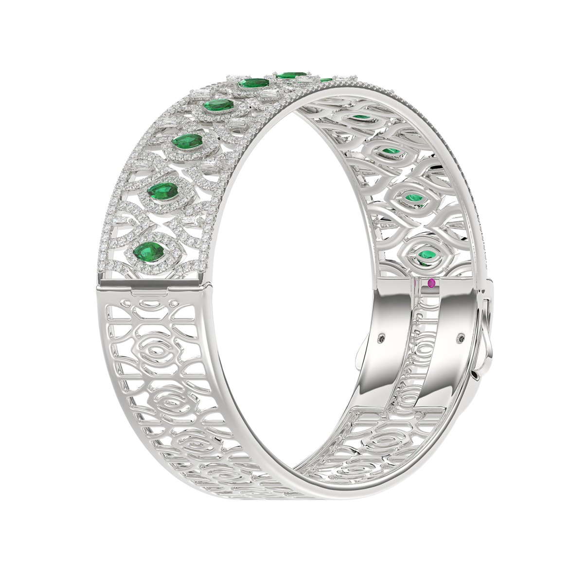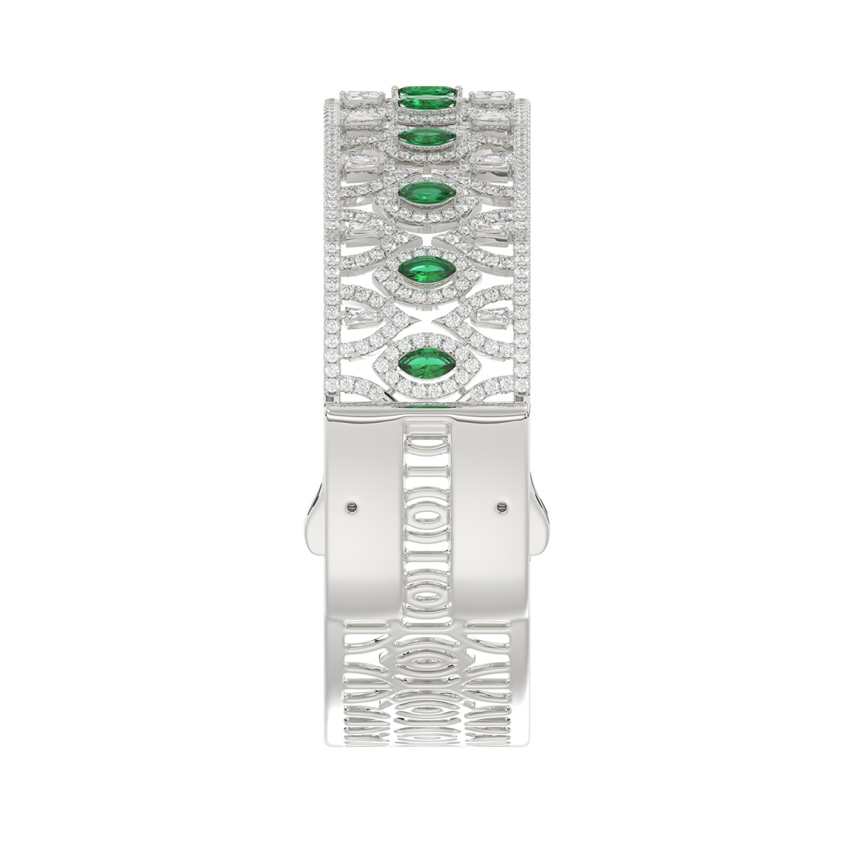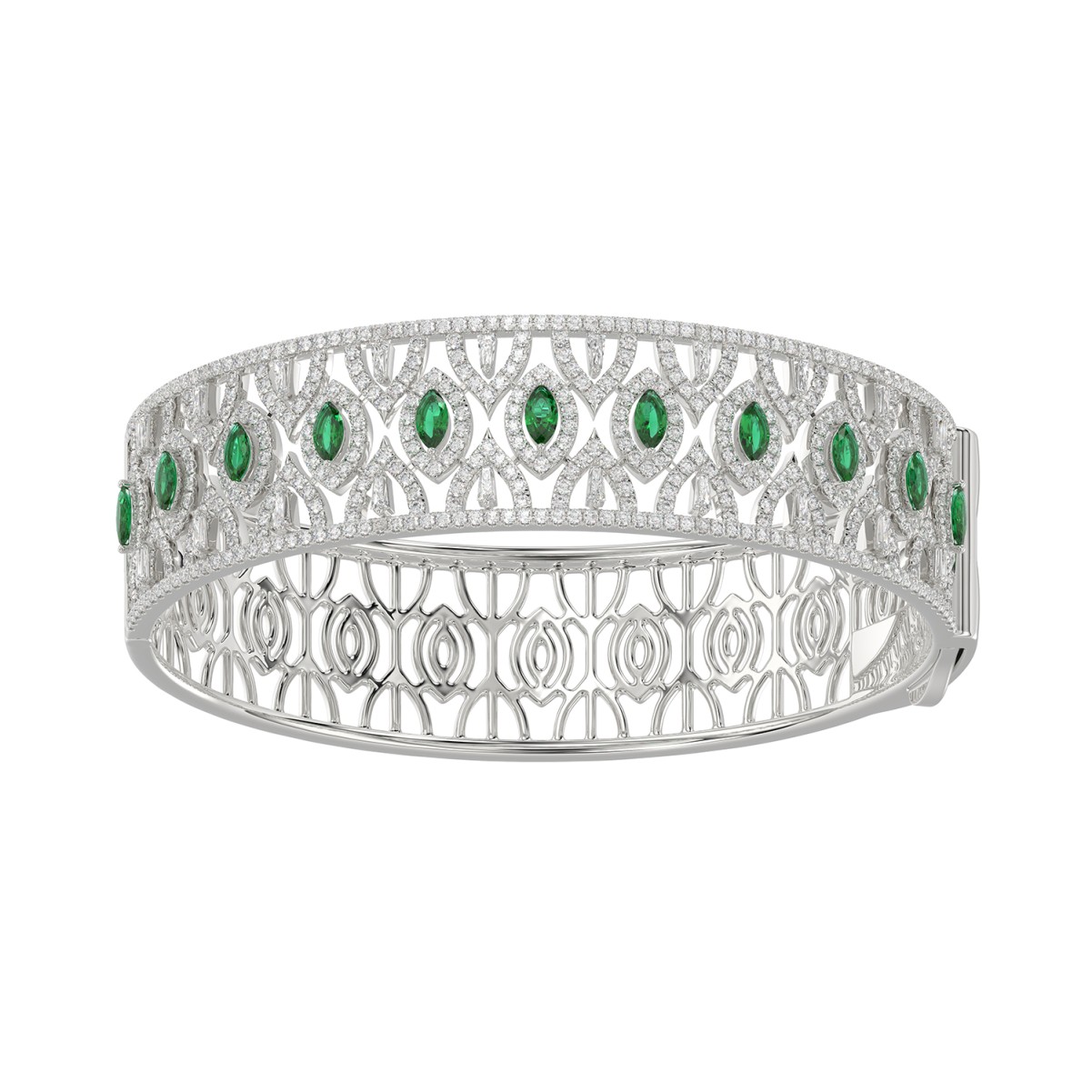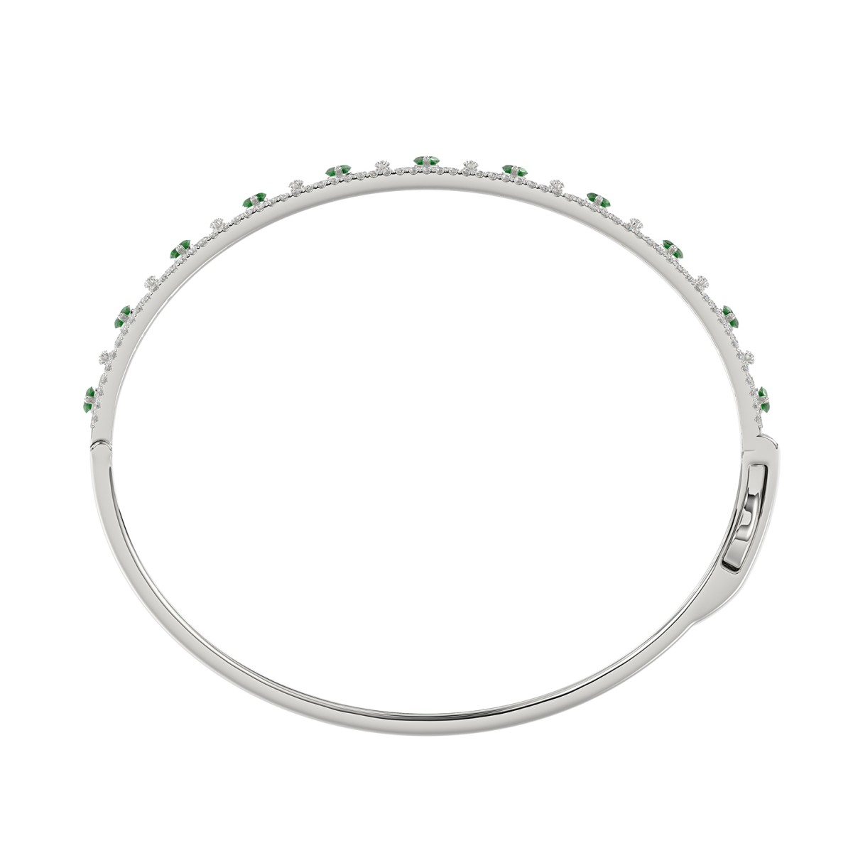 18K WHITE GOLD 5 1/2CT ROUND/MARQUISE DIAMOND LADIES BANGLE(COLOR STONE MARQUISE GREEN EMERALD DIAMOND 1 1/5CT)