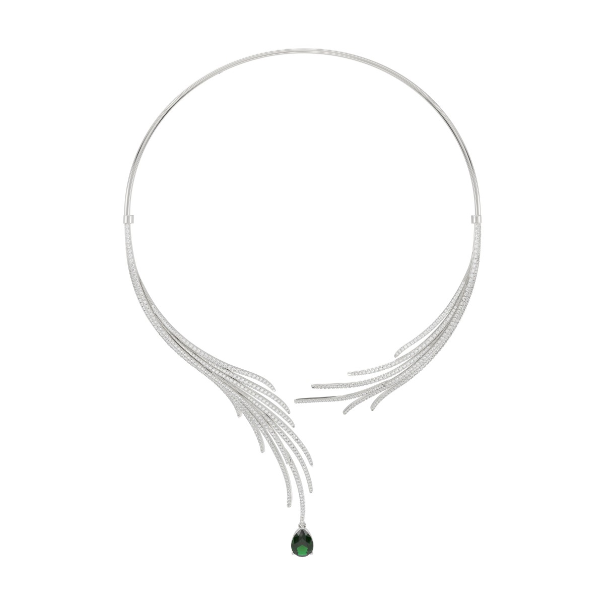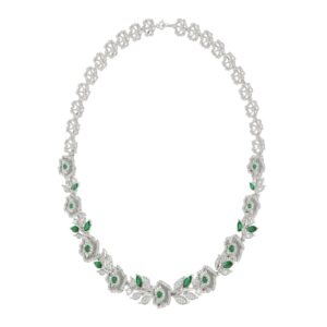 18K WHITE GOLD 6CT ROUND/PEAR DIAMOND LADIES NECKLACE(COLOR STONE EMERALD/PEAR 4 1/6CT)