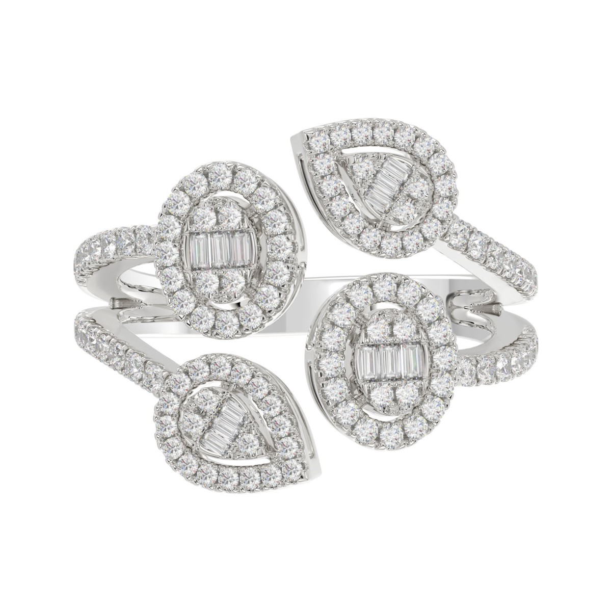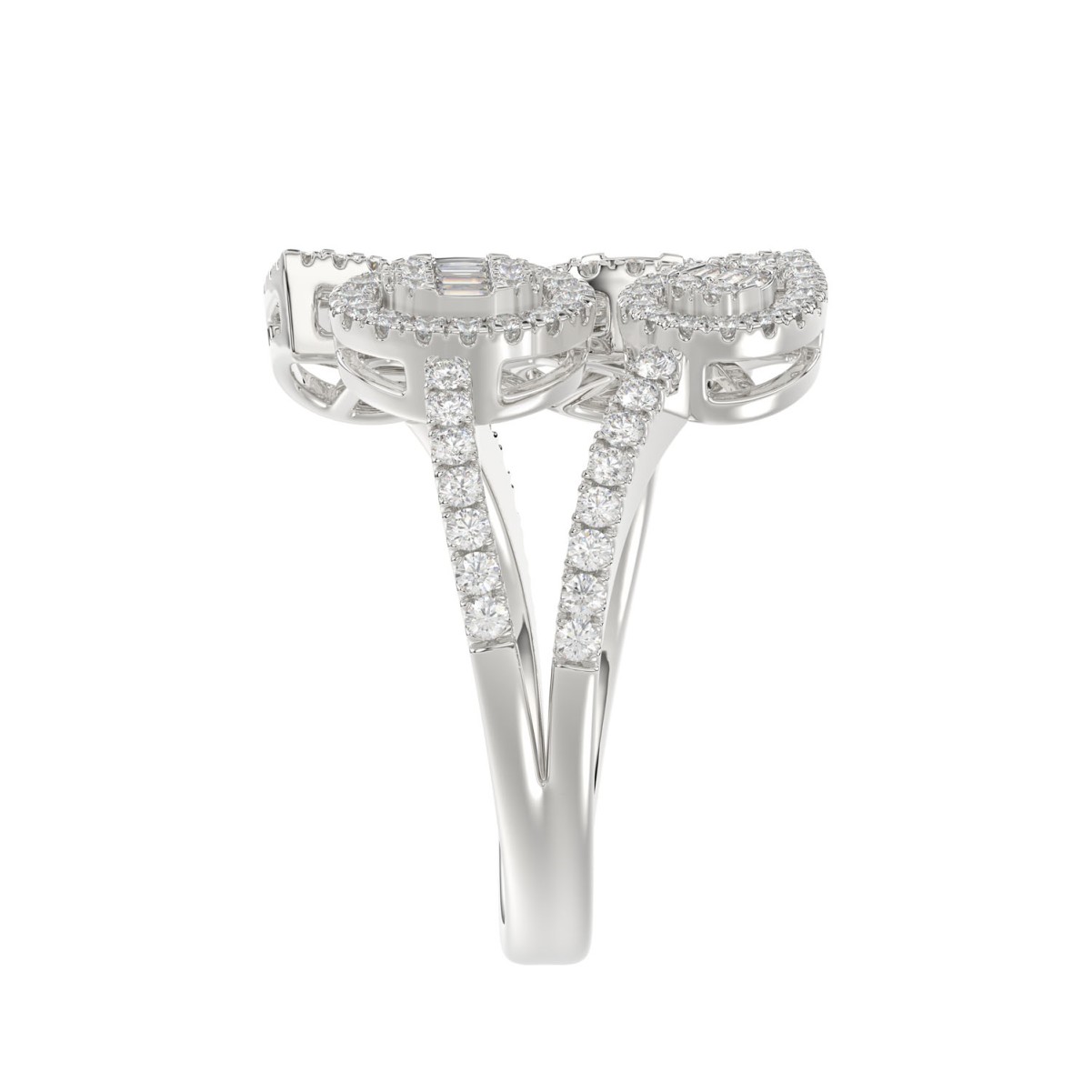 18K WHITE GOLD 7/8CT ROUND/BAGUETTE DIAMOND LADIES FASHION RING
