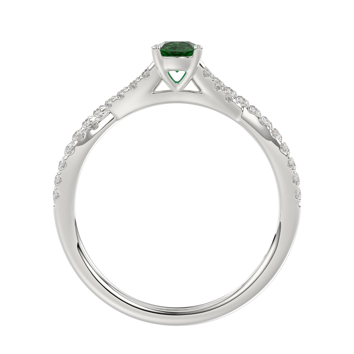 18K WHITE GOLD 7/8CT ROUND DIAMOND LADIES RING(COLOR STONE ROUND GREEN EMERALD DIAMOND 1/4CT)