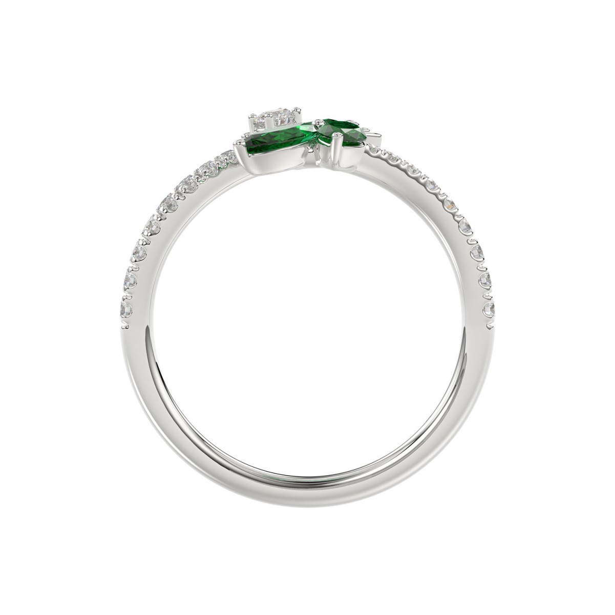 18K WHITE GOLD 7/8CT ROUND/EMERALD DIAMOND LADIES RING(COLOR STONE EMERALD/MARQUISE DIAMOND 5/8CT