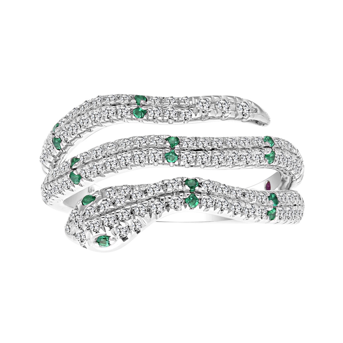 18K WHITE GOLD 7/8CT ROUND/EMERALD DIAMOND LADIES RING(COLOR STONE ROUND DIAMOND 1/6CT)