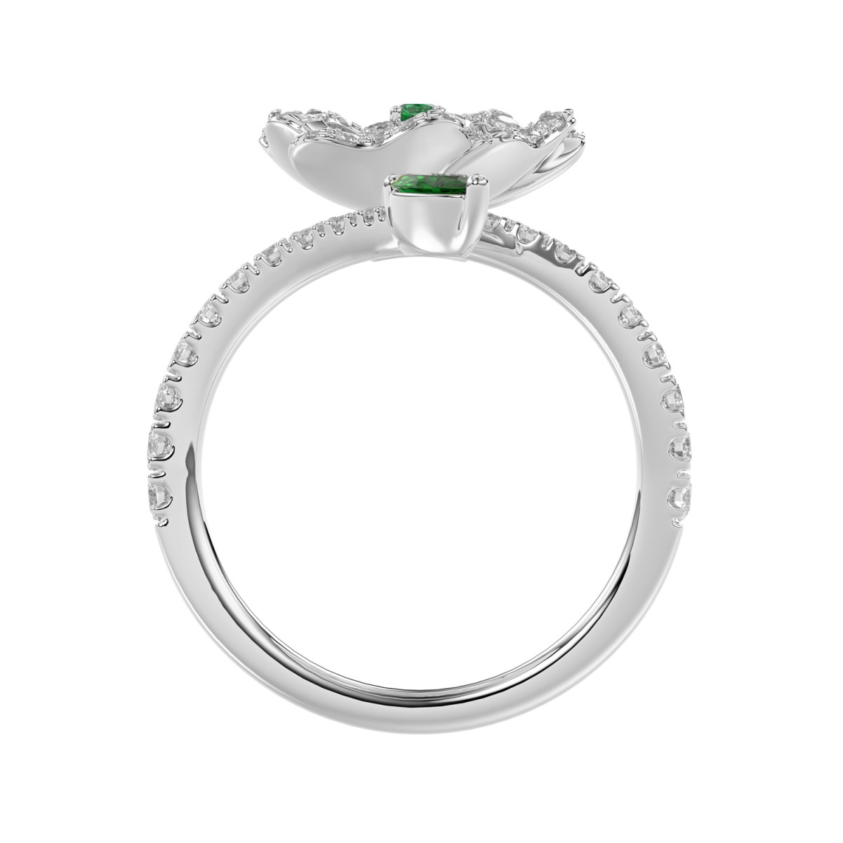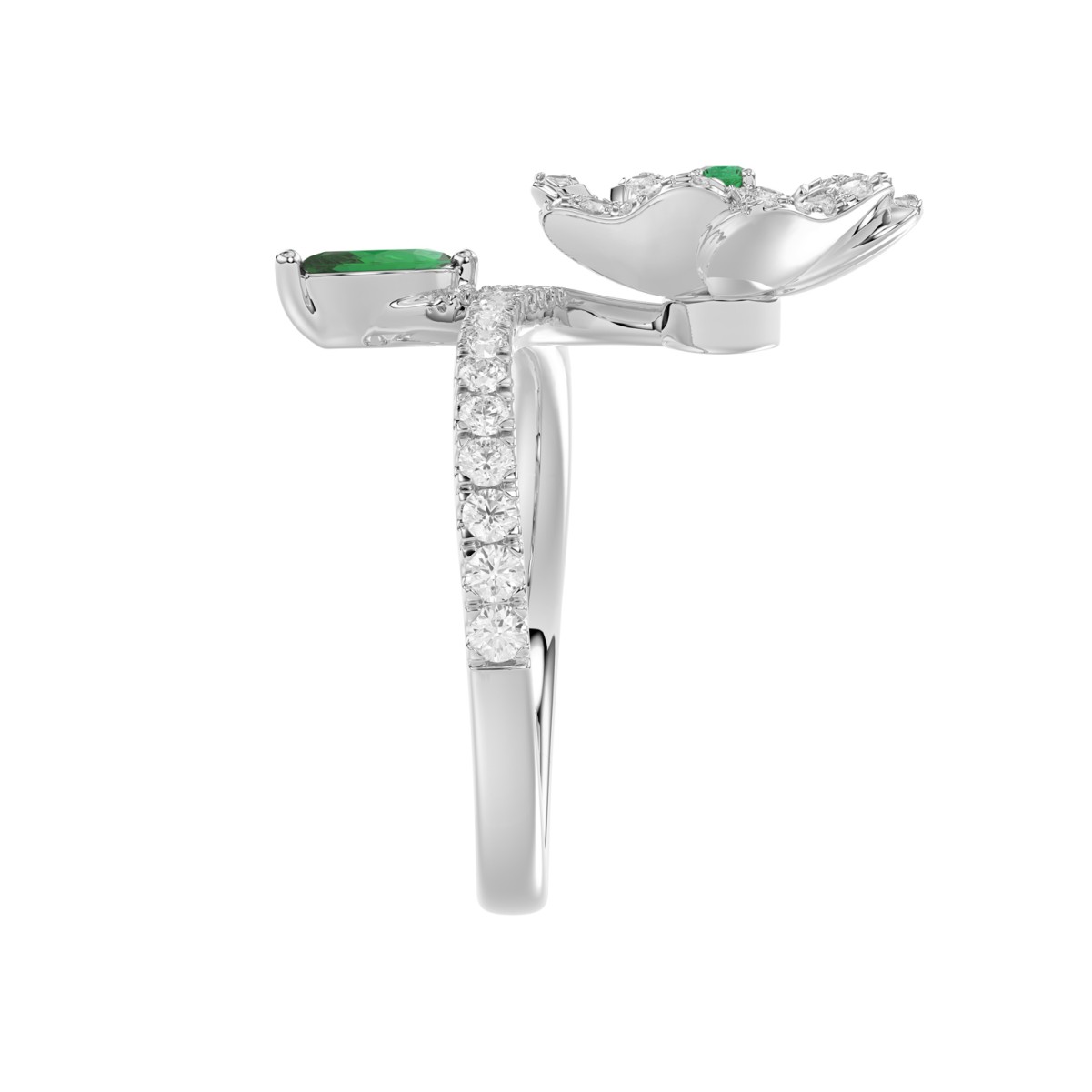 18K WHITE GOLD 7/8CT ROUND/MARQUISE DIAMOND LADIES RING(COLOR STONE GREEN EMERALD ROUND DIAMOND 1/20CT/MARQUISE DIAMOND 1/3CT)