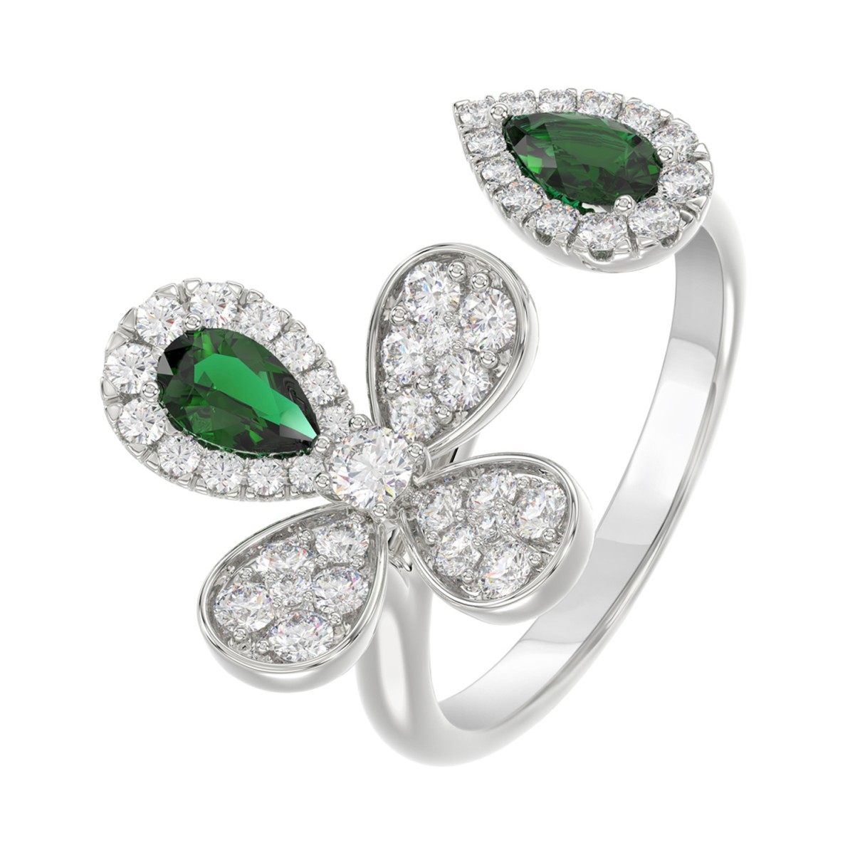 18K WHITE GOLD 7/8CT ROUND/PEAR DIAMOND LADIES RING