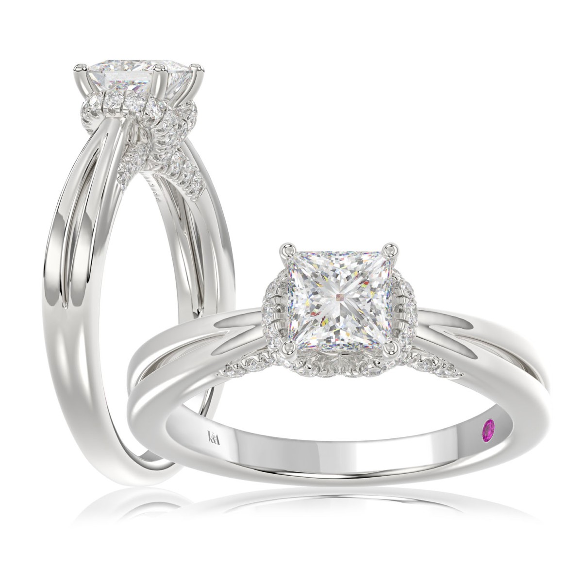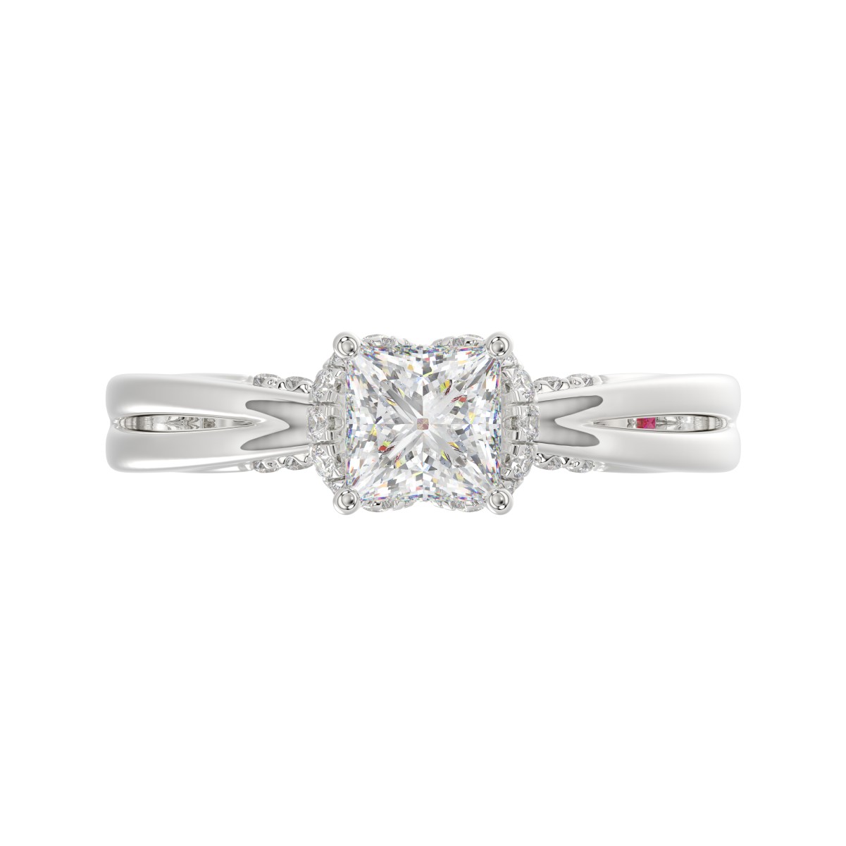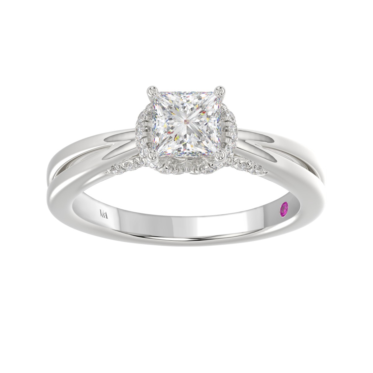 18K WHITE GOLD 7/8CT ROUND/PRINCESS DIAMOND LADIES RING( CENTER STONE PRINCESS DIAMOND 5/8 CT)