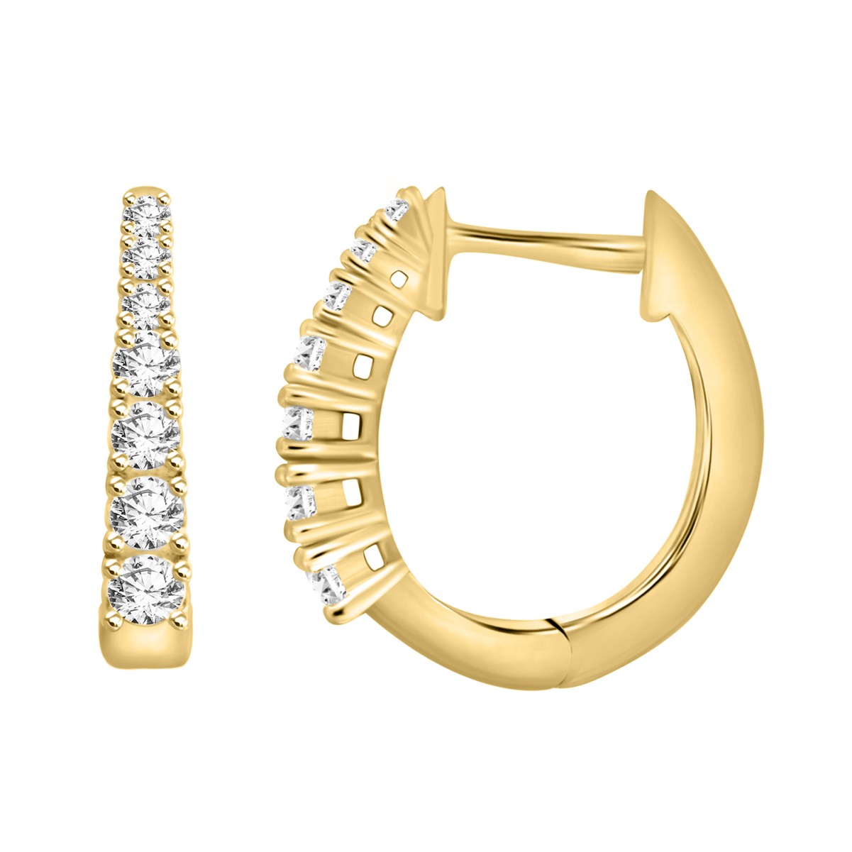 18K YELLOW GOLD 1.00CT ROUND DIAMOND LADIES HOOP EARRINGS