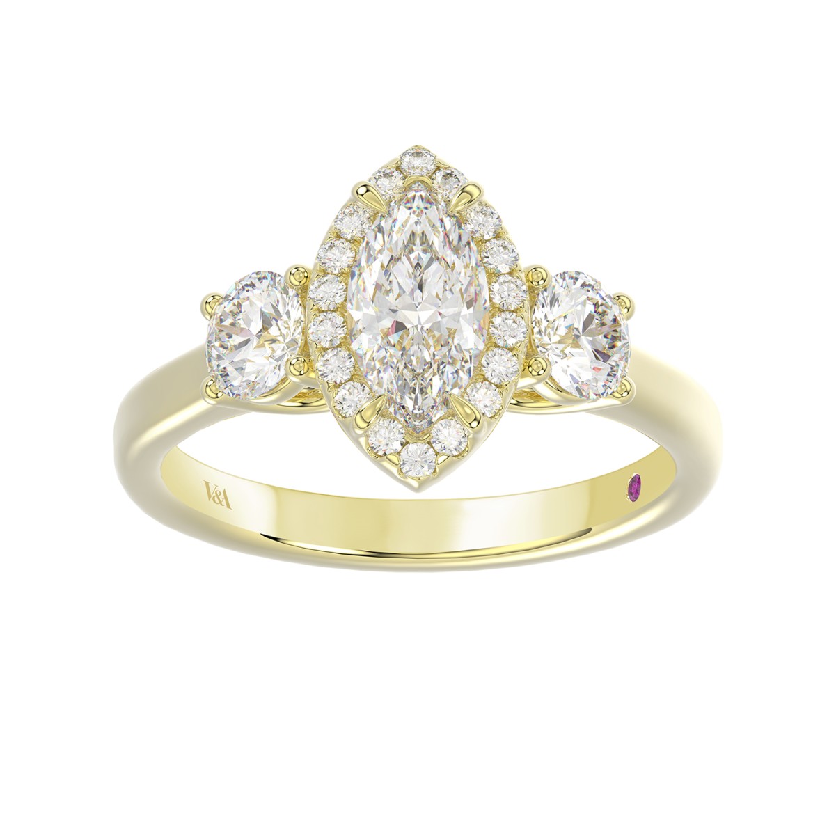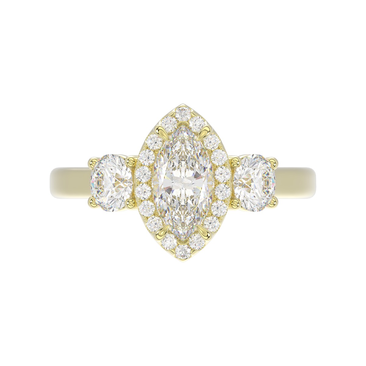 18K YELLOW GOLD 1 1/2CT ROUND/MARQUISE DIAMOND LADIES RING(CENTER STONE MARQUISE DIAMOND 3/4CT)