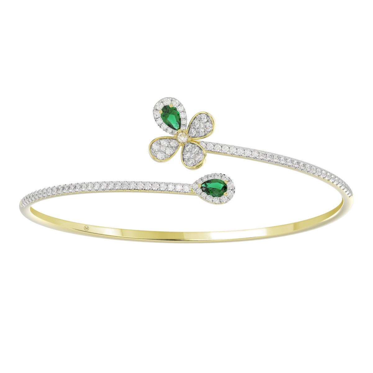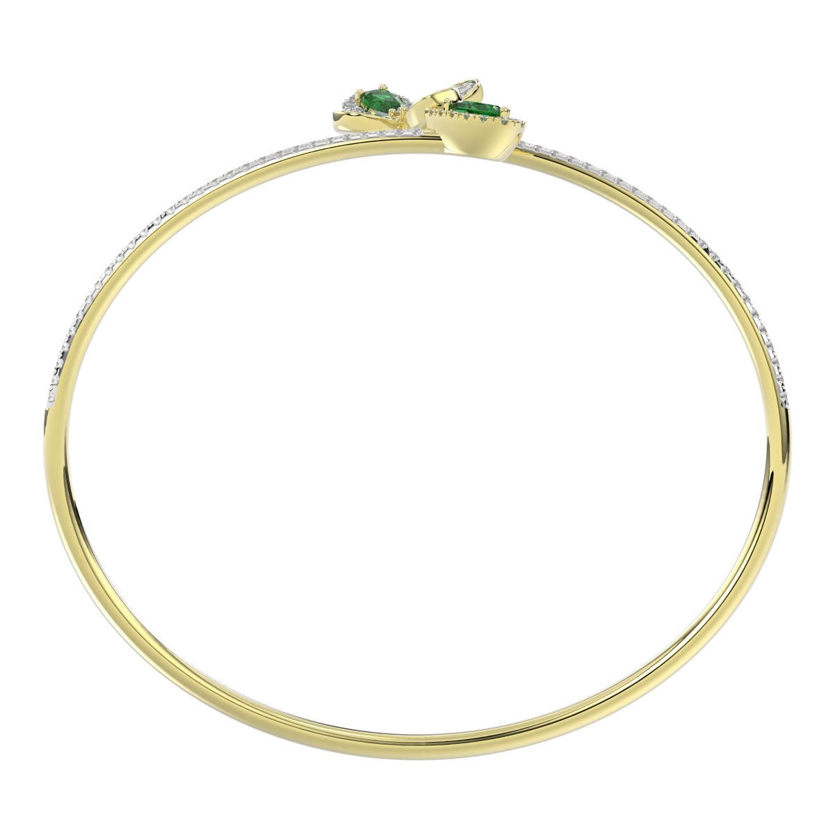 18K YELLOW GOLD 1 1/2CT ROUND/PEAR DIAMOND LADIES BANGLE(COLOR STONE PEAR GREEN EMERALD DIAMOND 2 1/2CT)