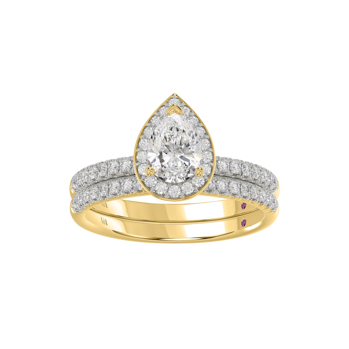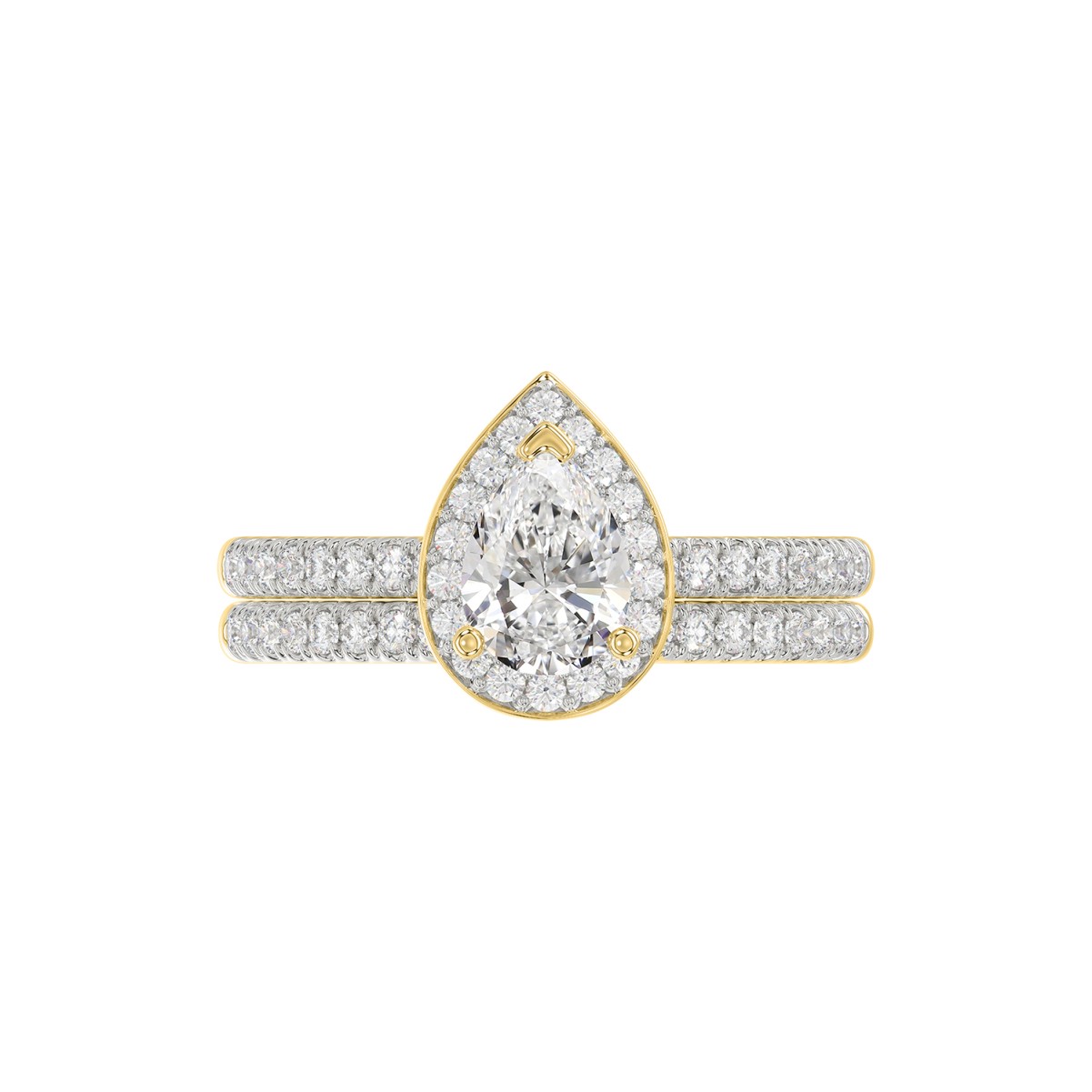 18K YELLOW GOLD 1 1/4 ROUND/PEAR DIAMOND LADIES BRIDAL SET(CENTER STONE PEAR DIAMOND 3/4CT)