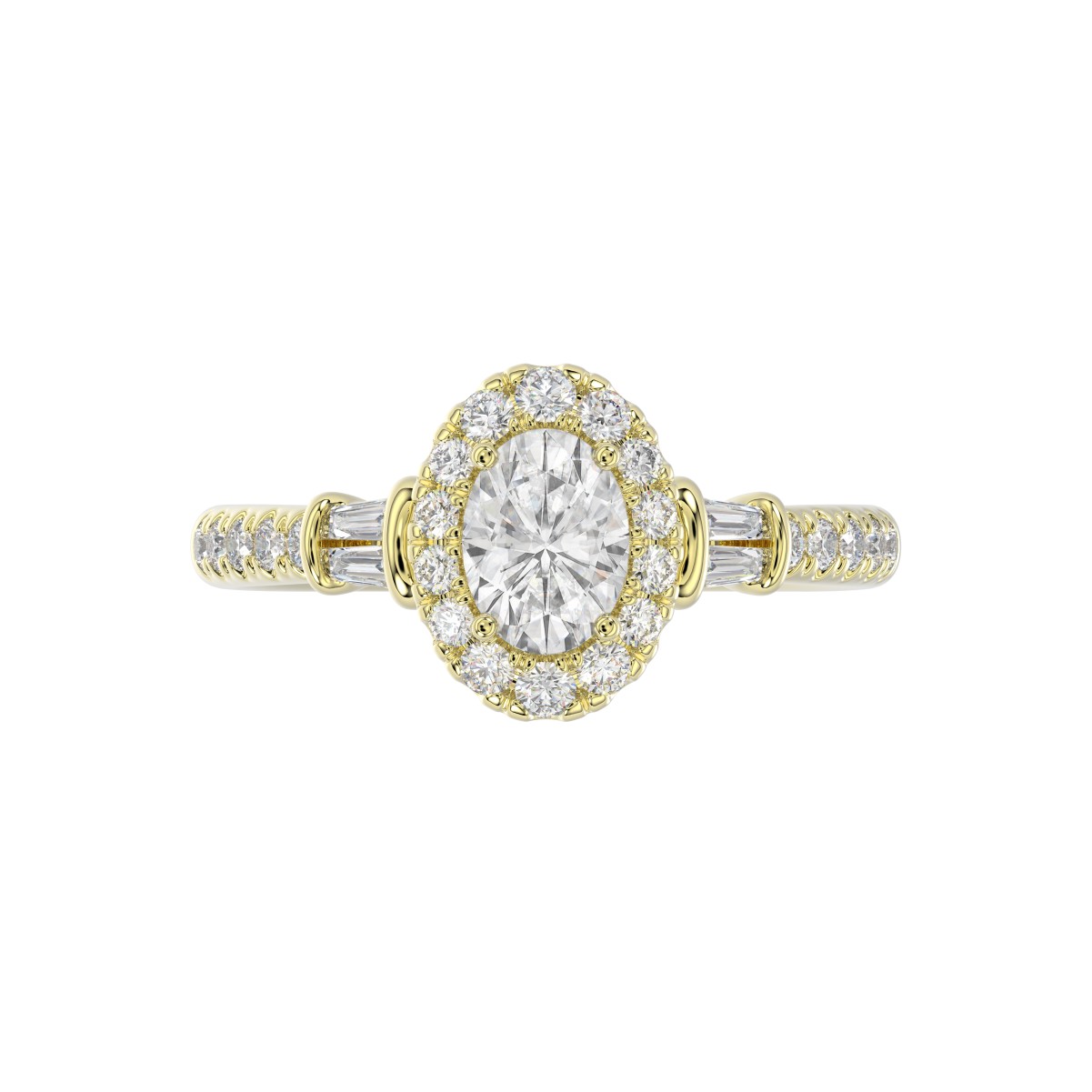 18K YELLOW GOLD 1 1/4CT ROUND/BAGUETTE/OVAL DIAMOND LADIES RING(CENTER STONE OVAL DIAMOND 3/4CT)