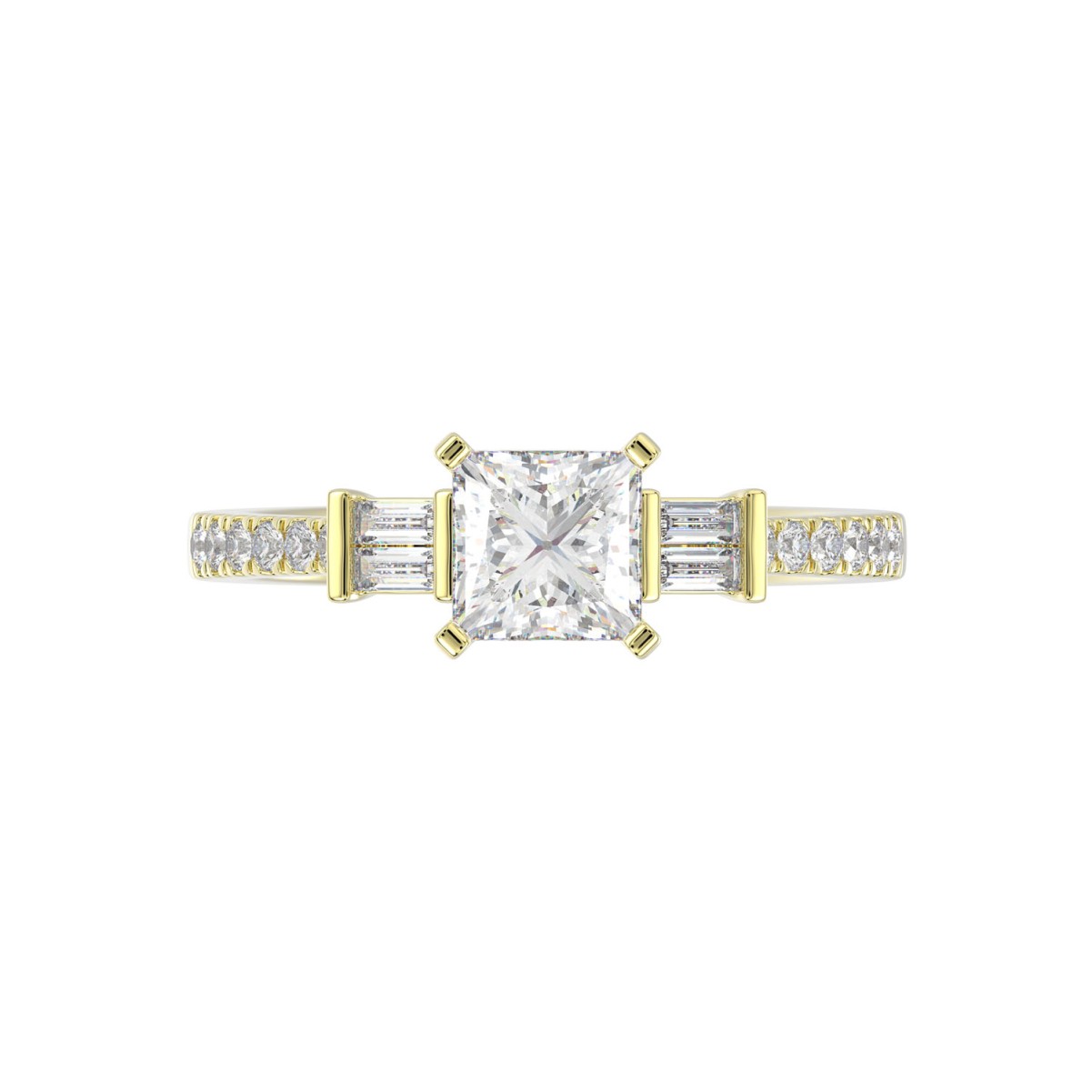 18K YELLOW GOLD 1 1/4CT ROUND/PRINCESS/BAGUETTE DIAMOND SEMI MOUNT LADIES RING (CENTER STONE PRINCESS DIAMOND 1.00CT)