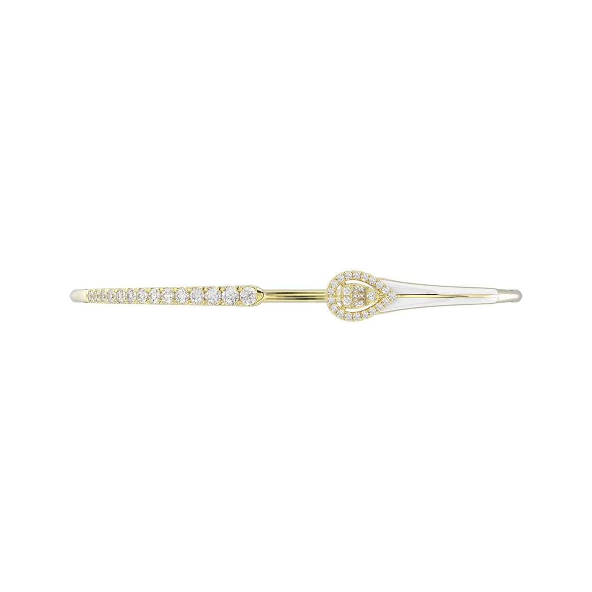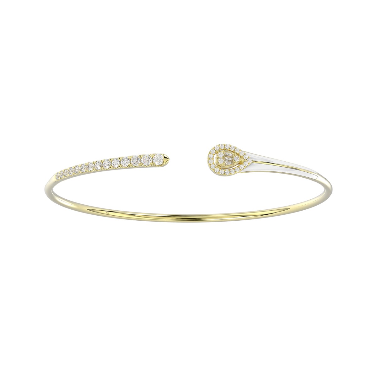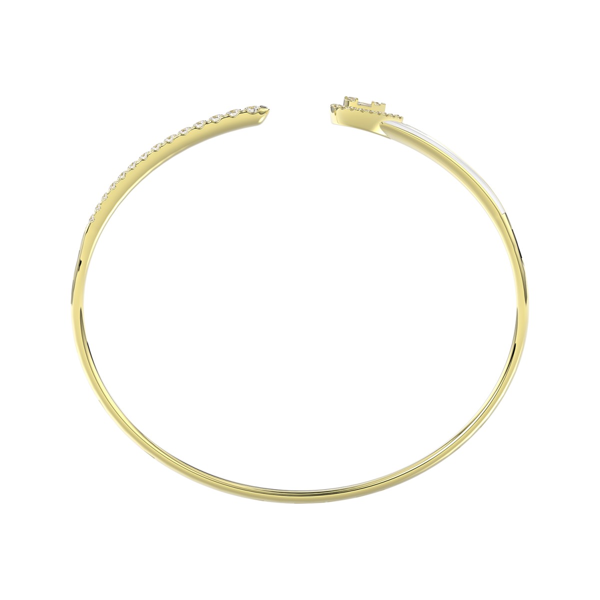 18K YELLOW GOLD 1/2CT ROUND/BAGUETTE DIAMOND LADIES BANGLE (SOFT WHITE ENAMEL)