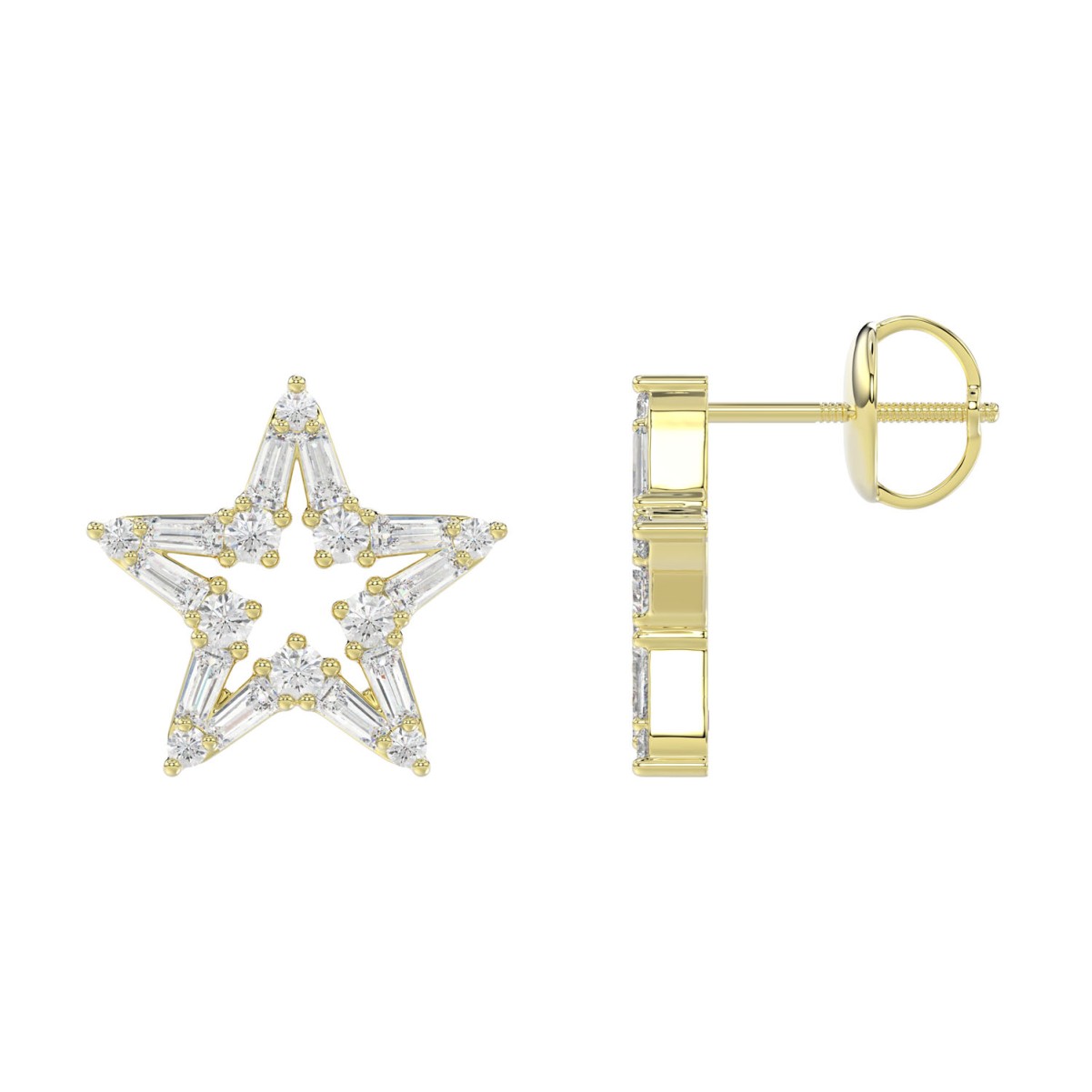 18K YELLOW GOLD 1/2CT ROUND/BAGUETTE DIAMOND LADIES EARRINGS