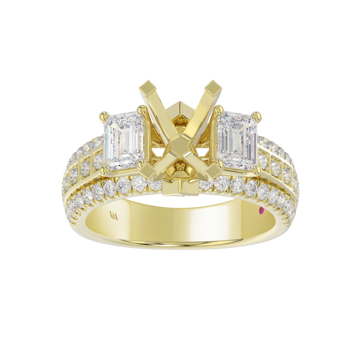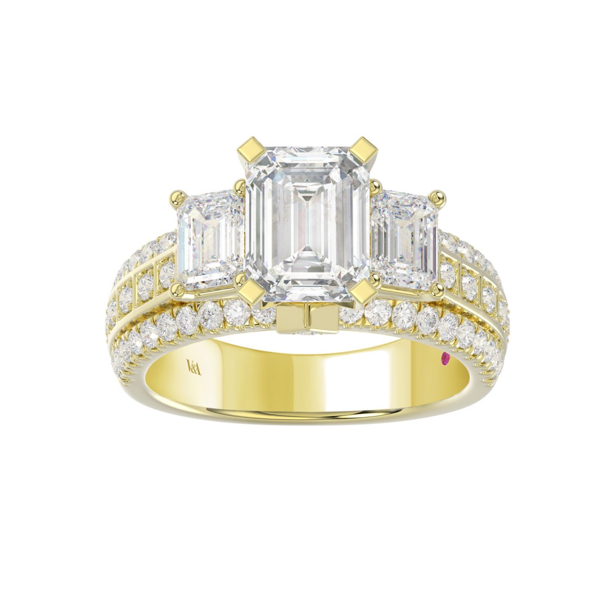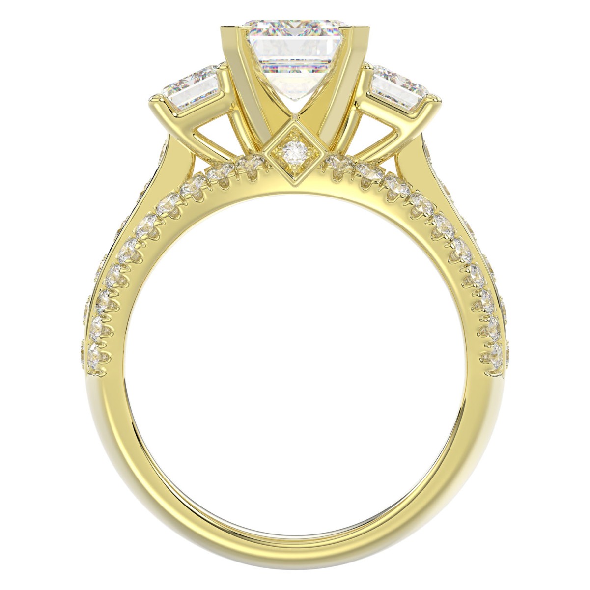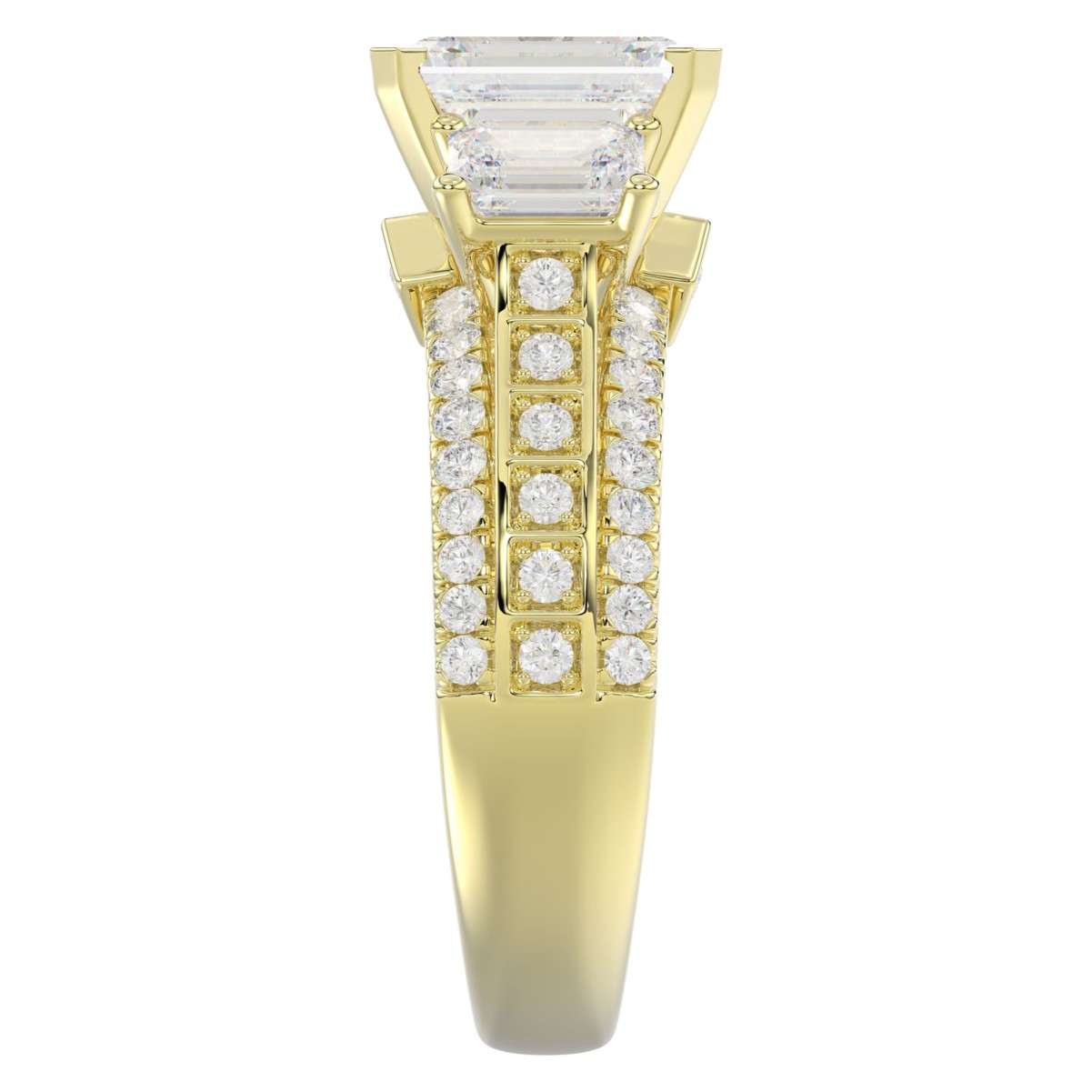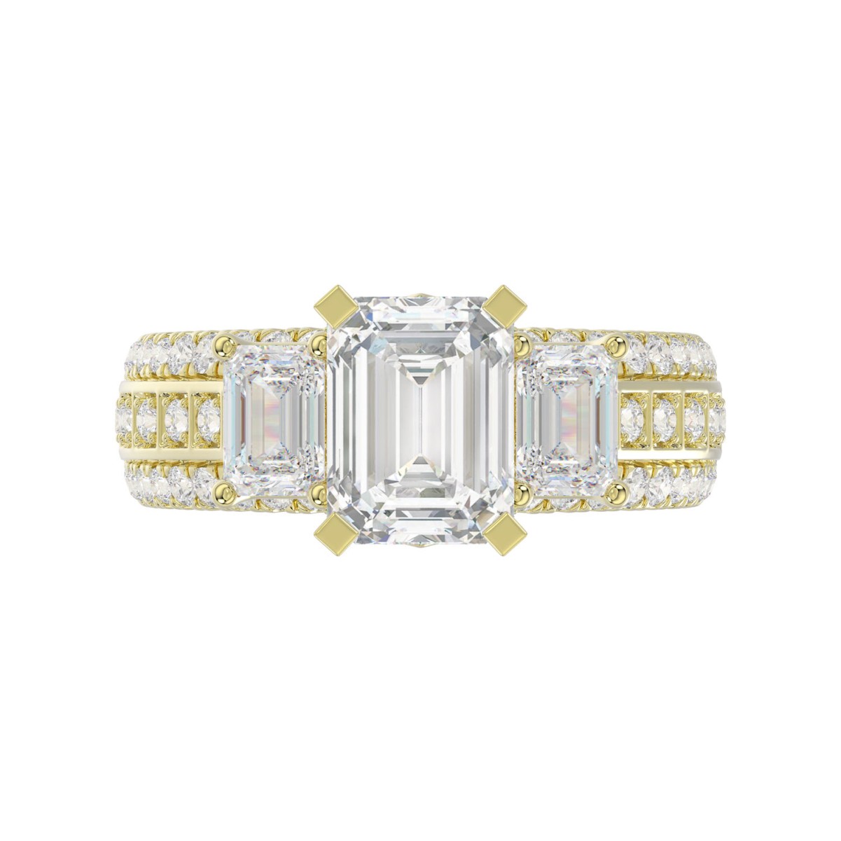 18K YELLOW GOLD 1/2CT ROUND/EMERALD DIAMOND LADIES RING(CENTER STONE EMERALD DIAMOND 2CT)