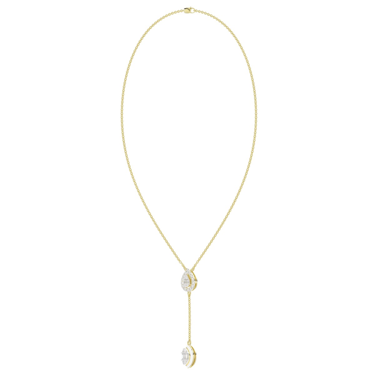 18K YELLOW GOLD 1/4CT ROUND/BAGUETTE DIAMOND LADIES NECKLACE (SOFT WHITE ENAMEL)