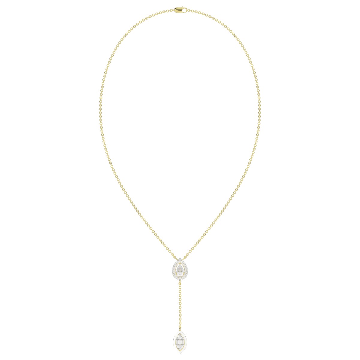 18K YELLOW GOLD 1/4CT ROUND/BAGUETTE DIAMOND LADIES NECKLACE (SOFT WHITE ENAMEL)