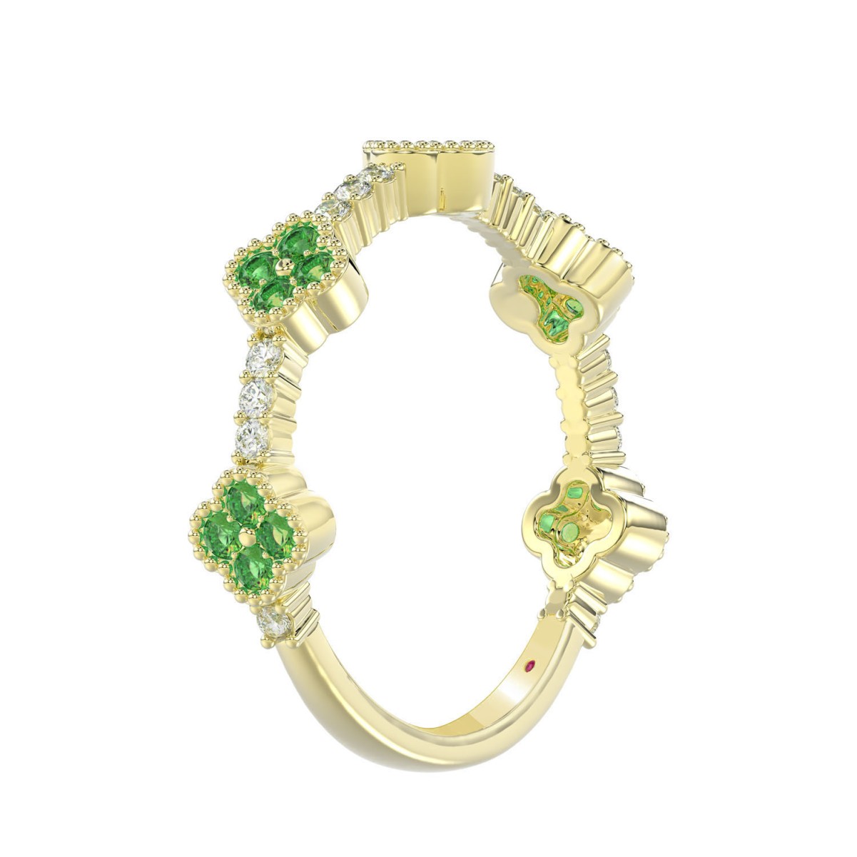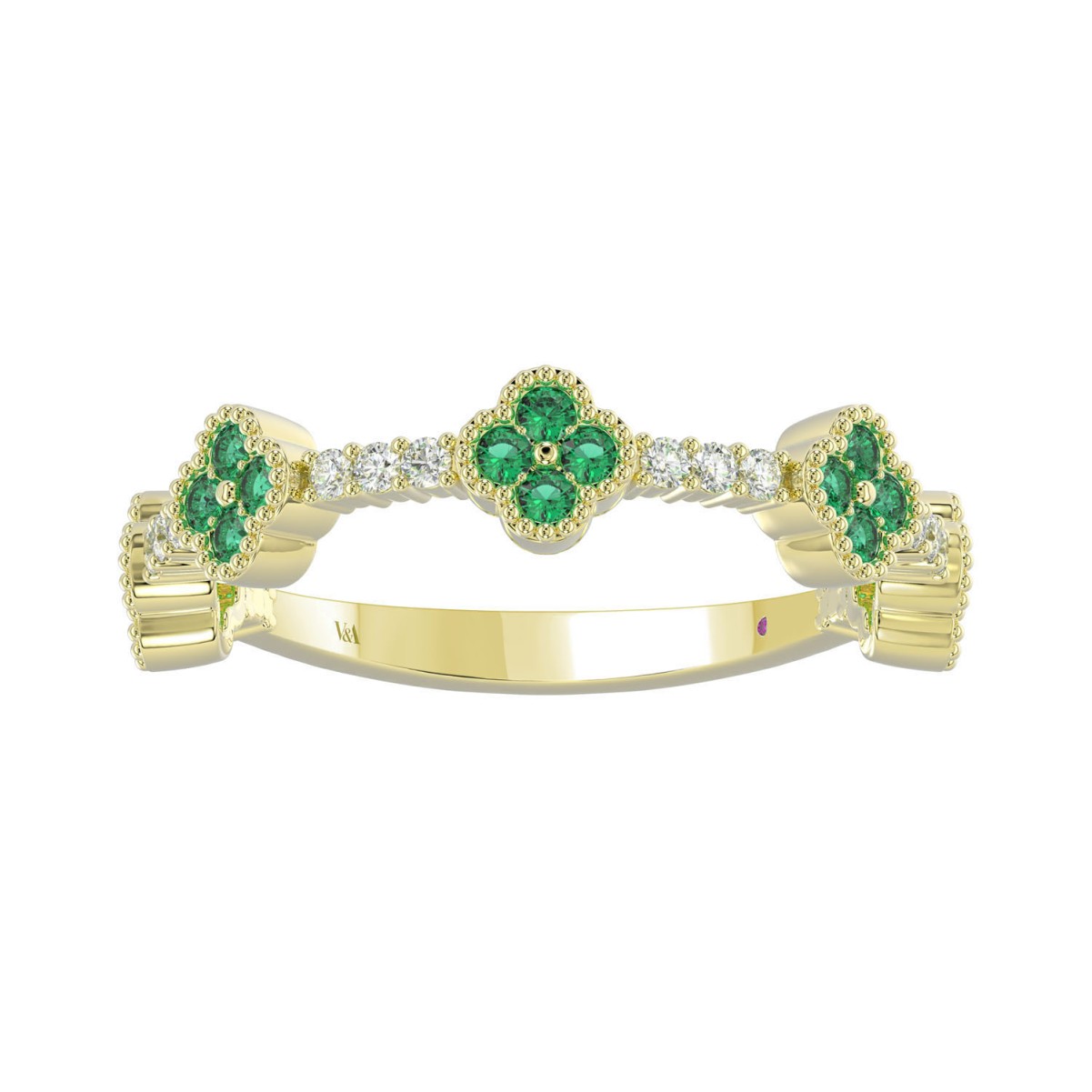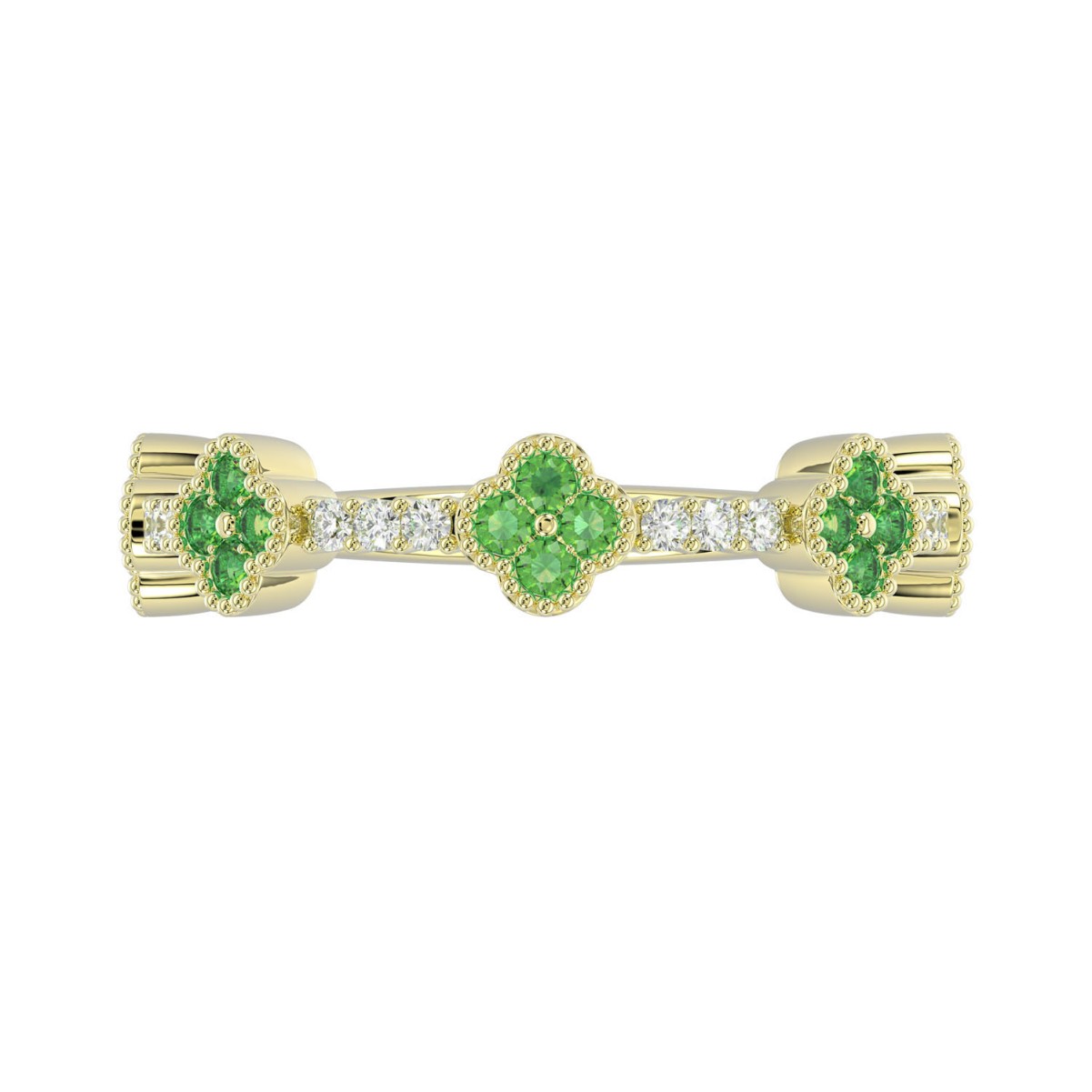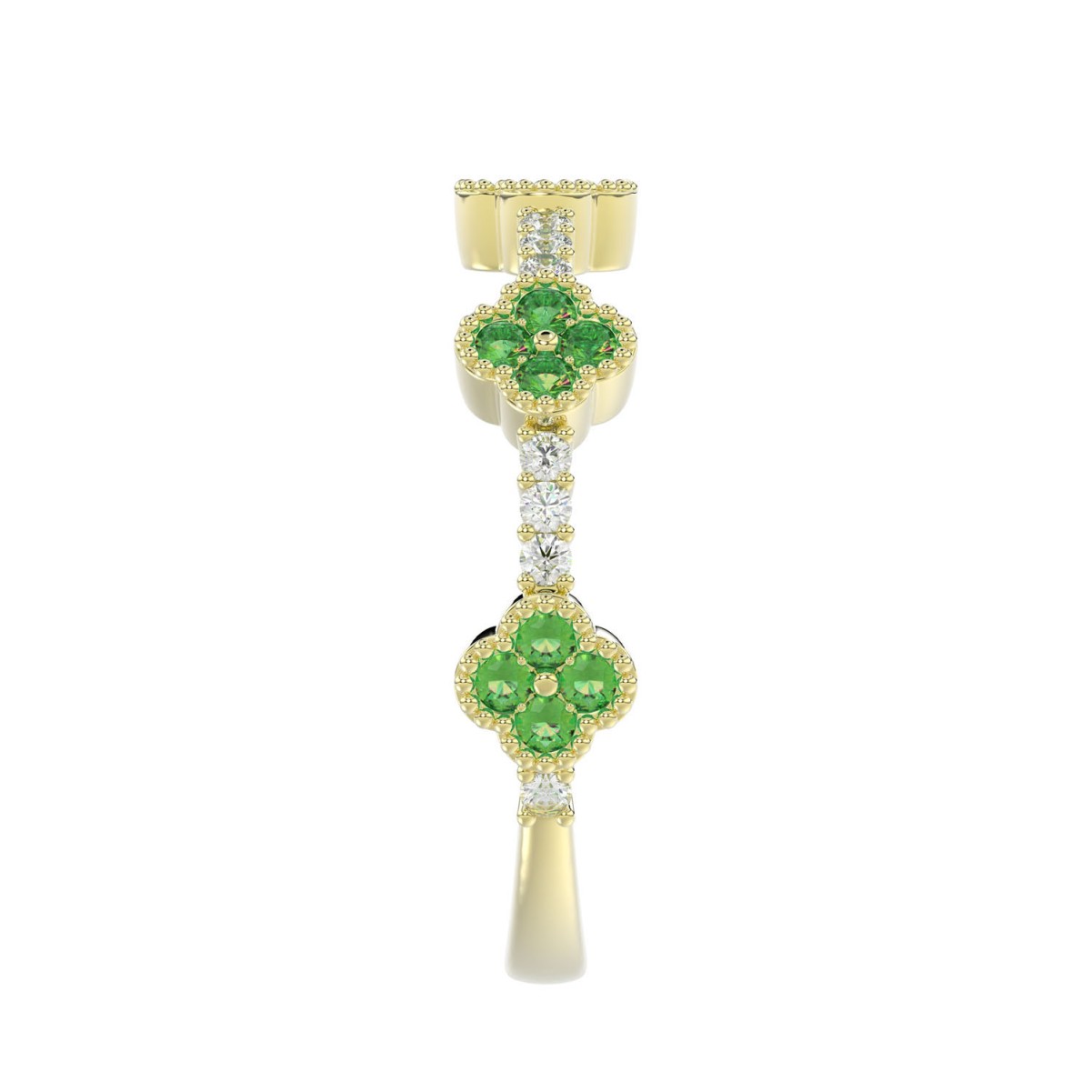 18K YELLOW GOLD 1/4CT ROUND DIAMOND LADIES RING(COLOR STONE ROUND GREEN EMERALD DIAMOND 1/10CT)