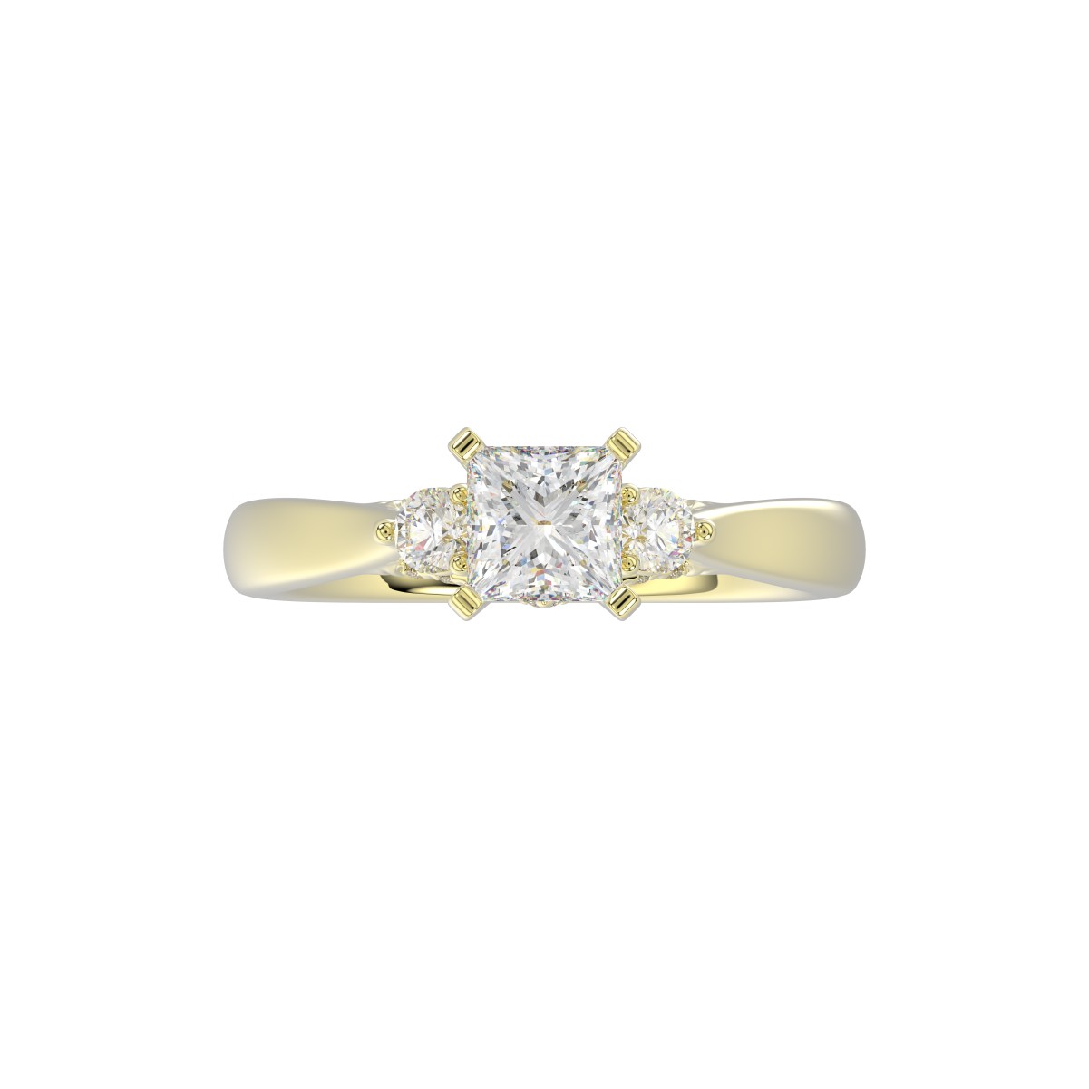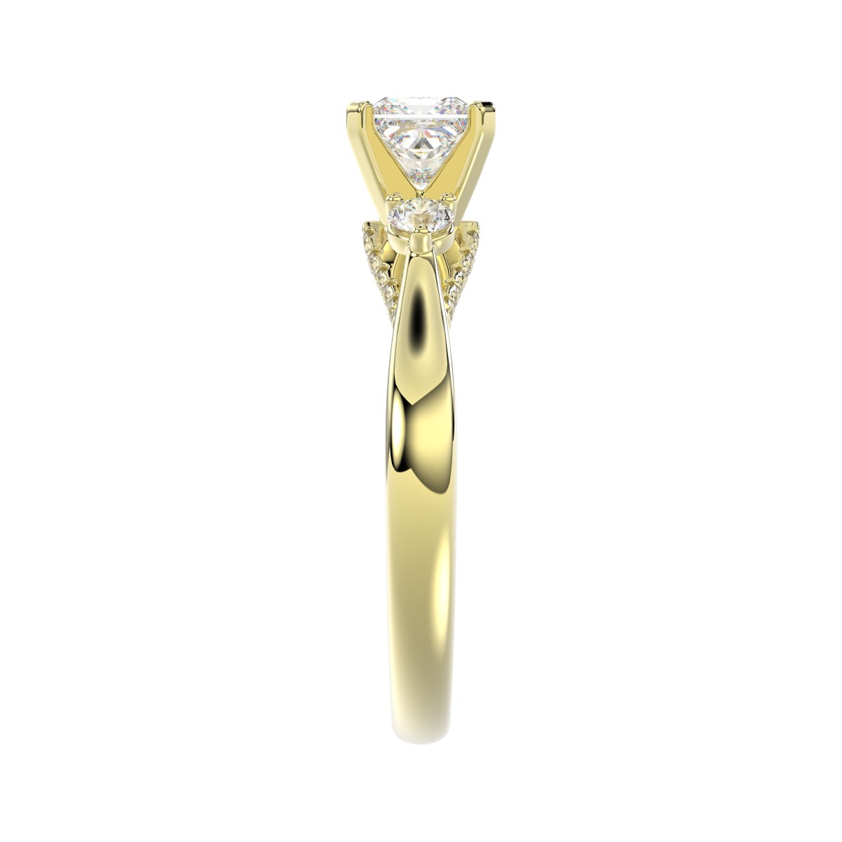 18K YELLOW GOLD 1/4CT ROUND/PRINCESS DIAMOND LADIES RING(CENTER STONE PRINCESS DIAMOND 3/4CT)